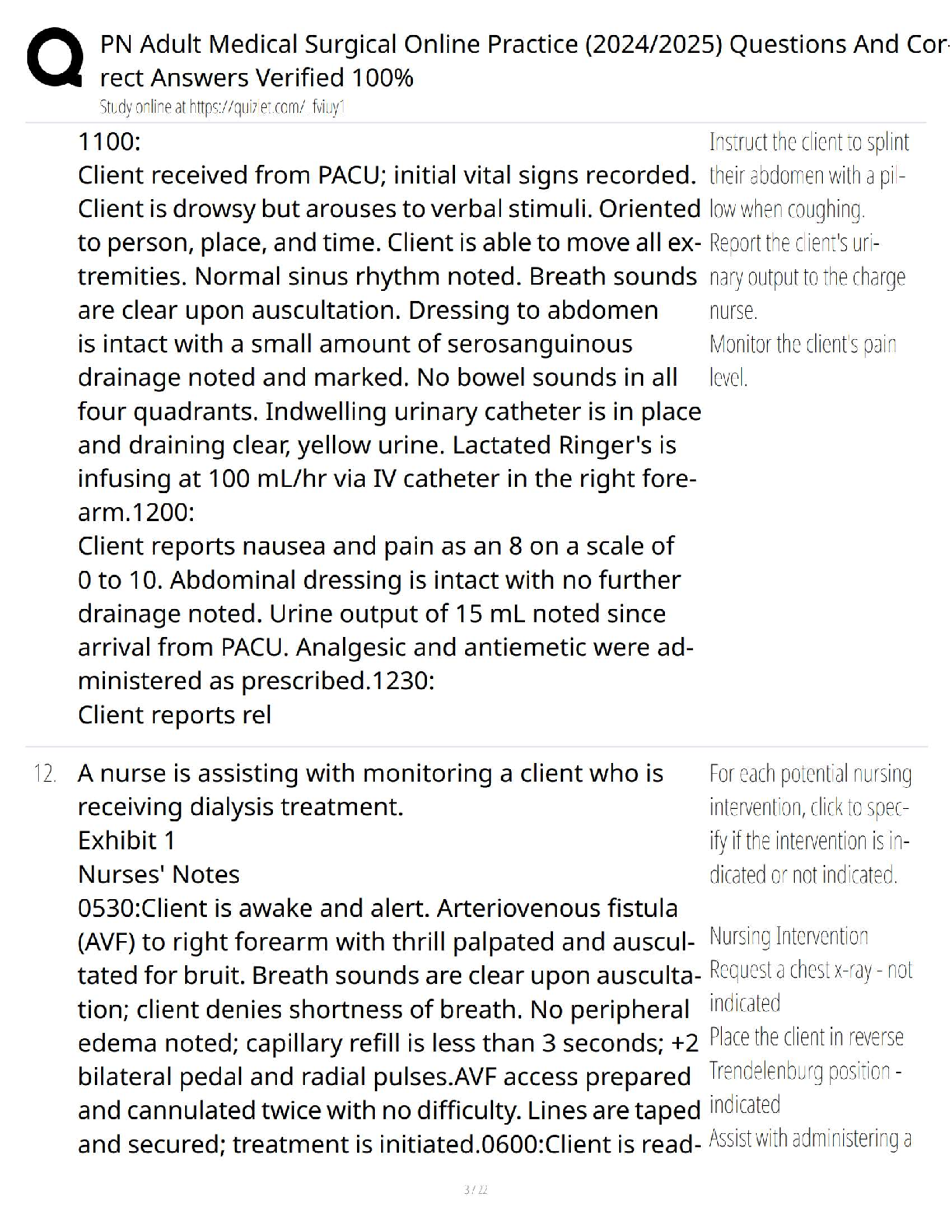 PN Adult Medical Surgical Nursing Test Bank 2024/2025: Fully Verified Questions & Solutions to Ensure Exam Success