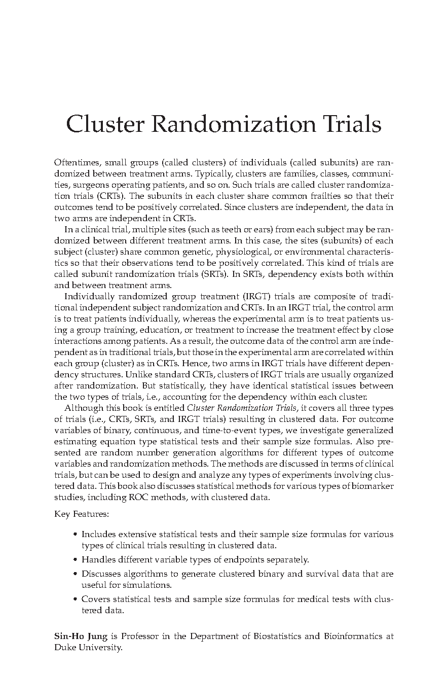 Cluster Randomization Trials: Statistical Design and Analysis, 1st Edition by Sin-Ho Jung - Your Ultimate 2025/2026 Academic Year Guide to Passing Biostatistics Exams on Your First Attempt