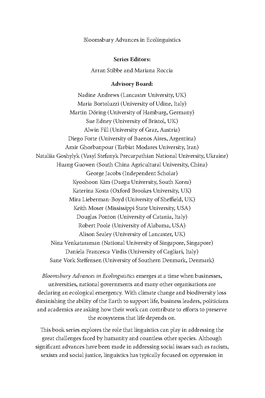 Ecolinguistics and Environment in Education: Language, Culture, and Textual Analysis by Emile Bellewes, Arran Stibbe, and Mariana Rocc­ia (2025/2026 Edition)