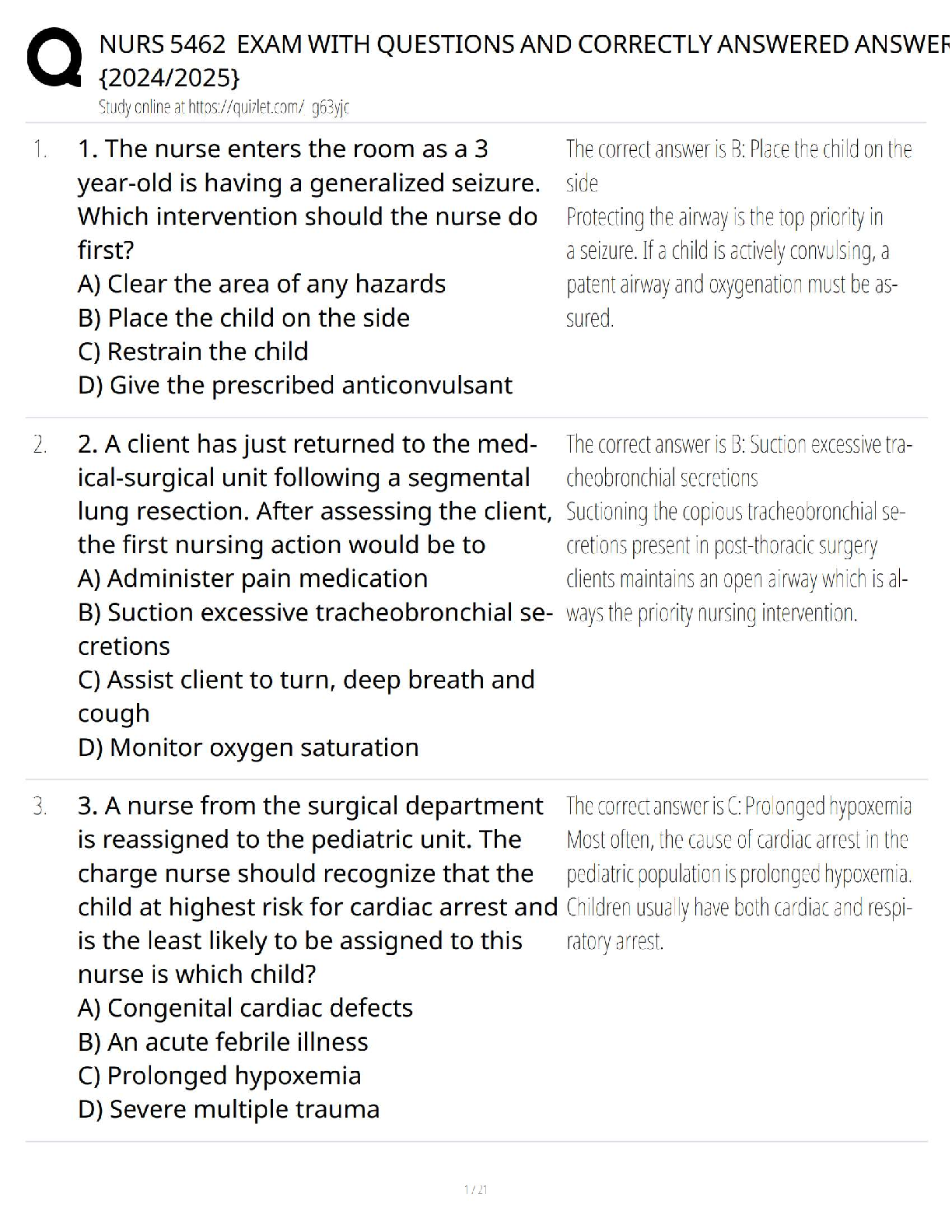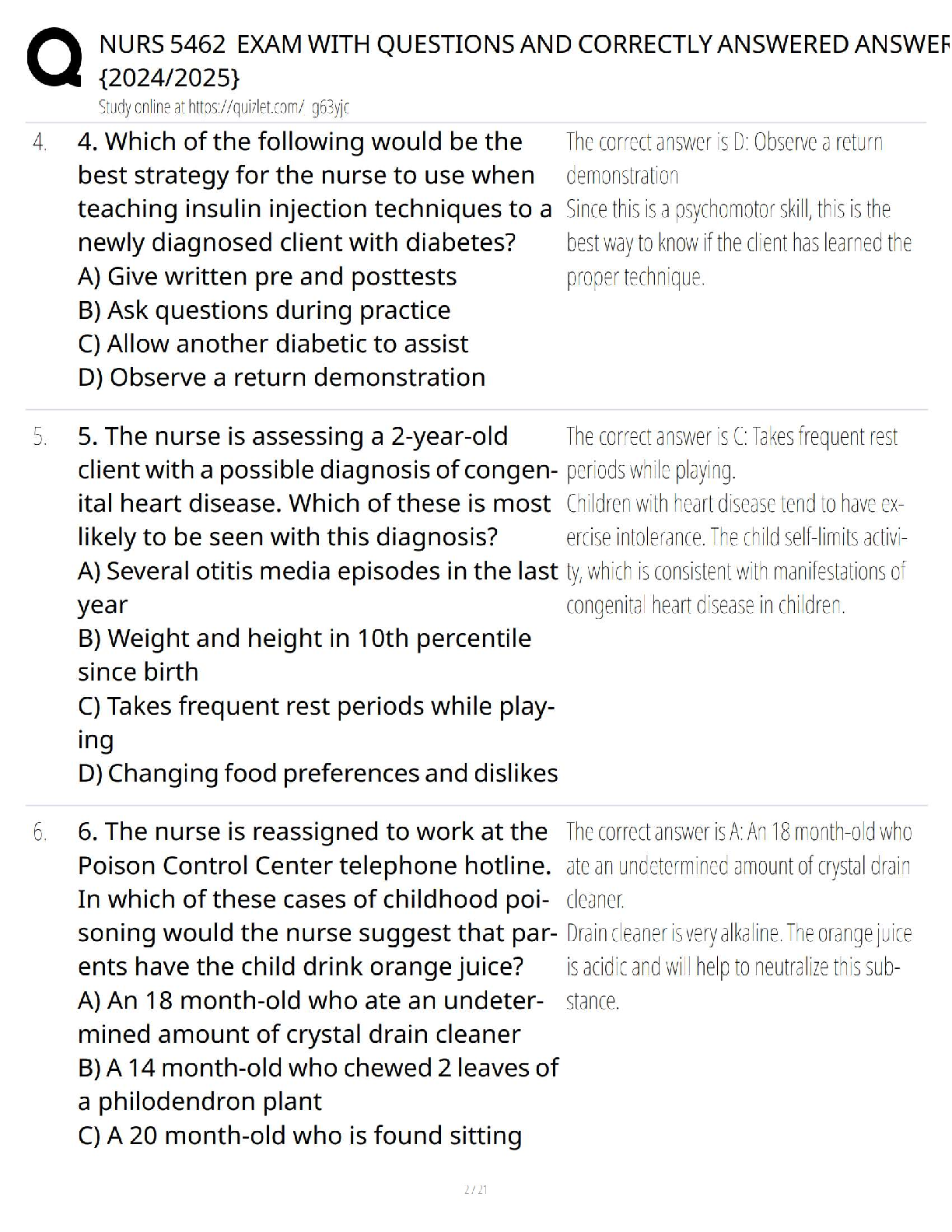 Master NURS 5462 with this essential exam preparation resource. Featuring expertly crafted questions and detailed, correct answers, this guide is designed to help nursing students confidently pass their exams on the first try, avoiding resits. Perfect for the 2024/2025 academic year.