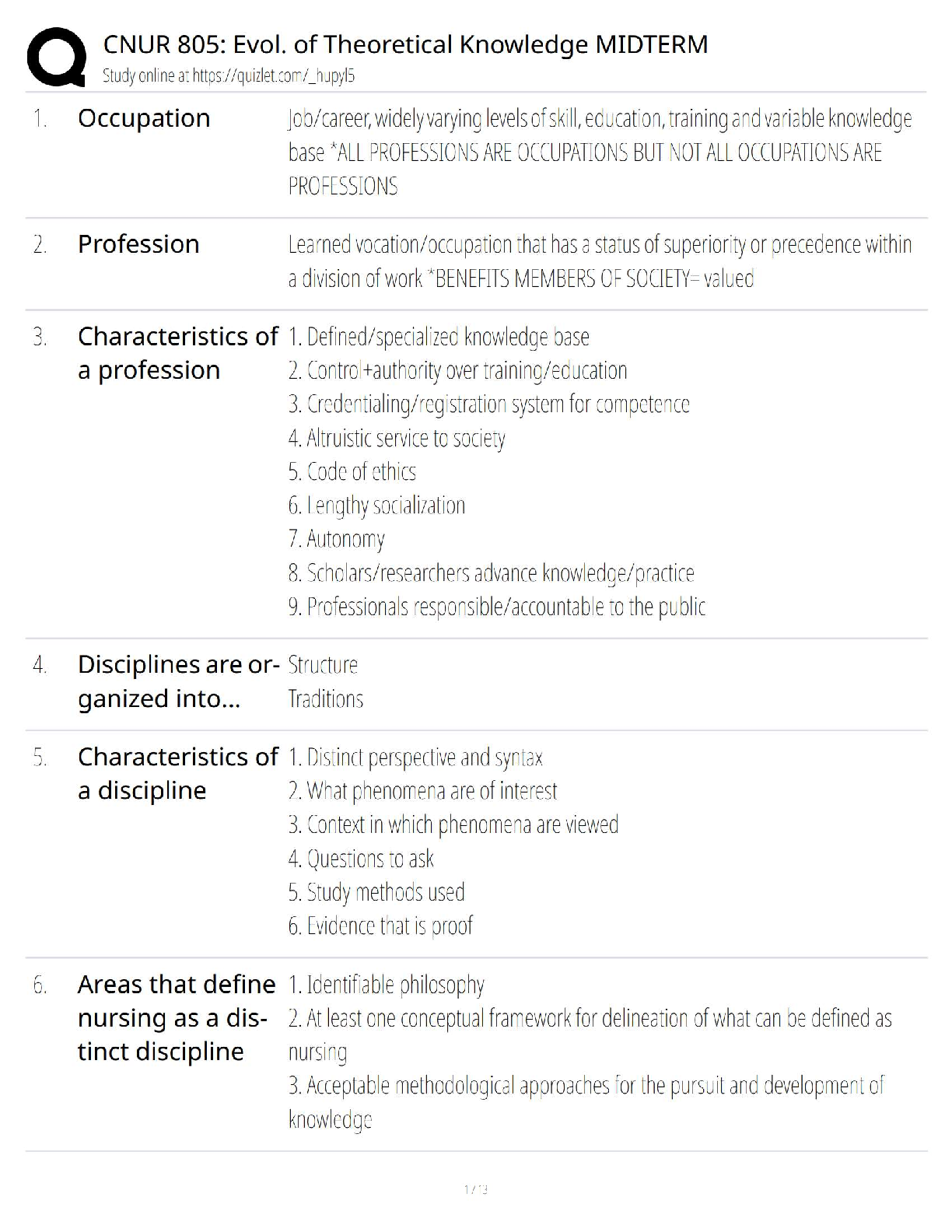 Ace your CNUR 805: Evolution of Theoretical Knowledge midterm with this comprehensive study guide. Covering key concepts like occupation, profession, characteristics of a profession and discipline, and areas defining nursing, this resource is designed to help students master the material and avoid resits. Perfect for the 2025/2026 academic year!