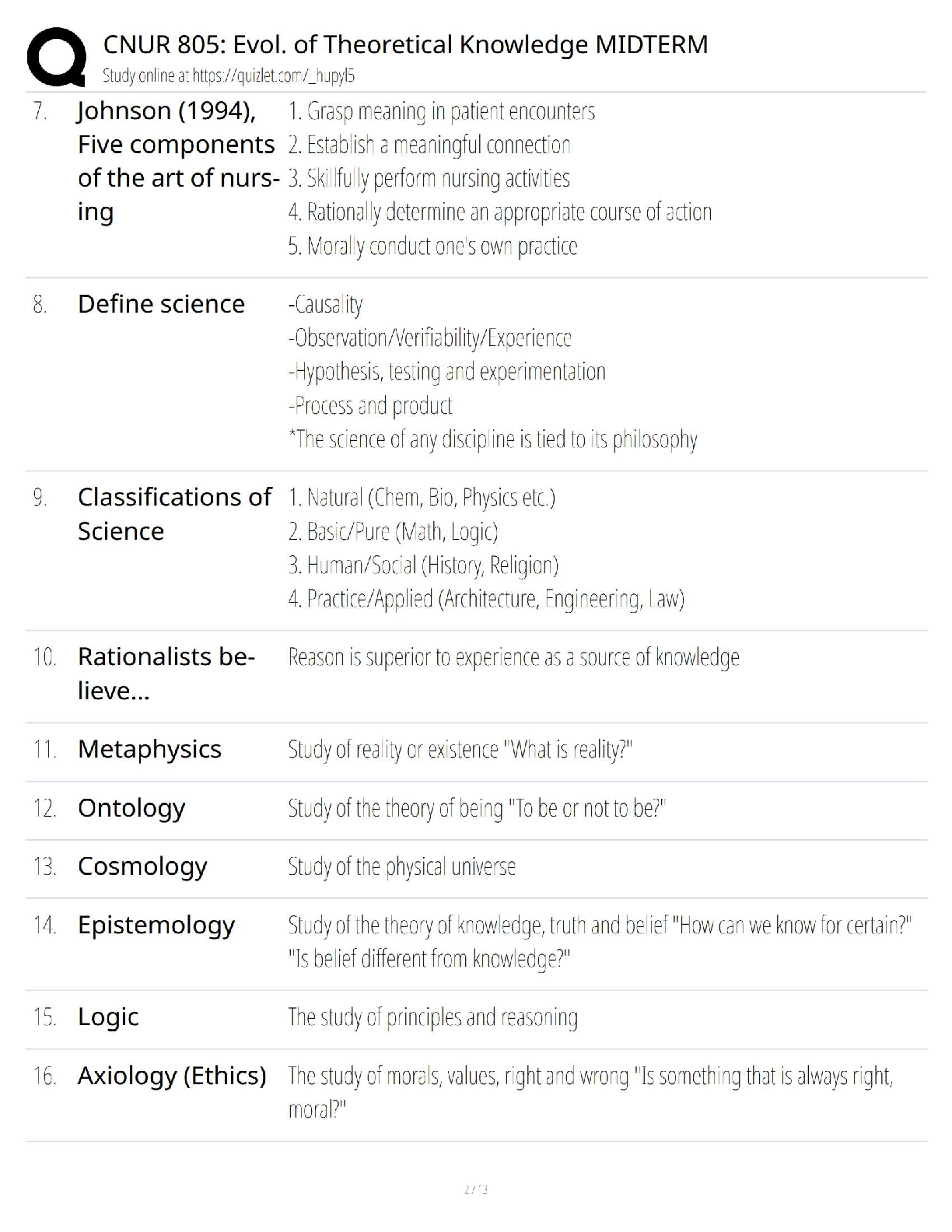 CNUR 805: Evolution of Theoretical Knowledge - Midterm Study Guide (2025/2026 Academic Year Edition)