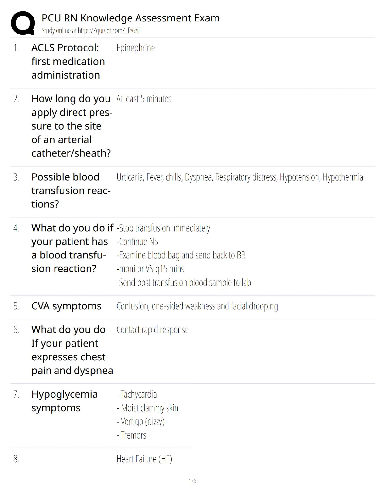 PCU RN Knowledge Assessment Exam: ACLS, Blood Transfusions, CVA, Hypoglycemia & Heart Failure - Prepare for 2025/2026 Exams