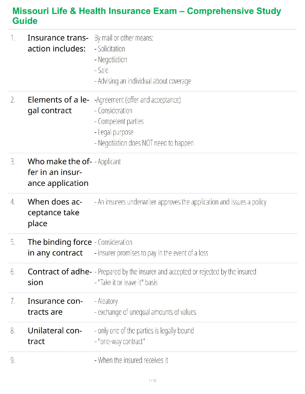 Ace your Missouri Life & Health Insurance Exam on your first attempt! This comprehensive study guide for the 2025/2026 academic year covers essential topics, including insurance transactions, legal contracts, and policy acceptance. Avoid resits with expert insights and targeted content designed for exam success.