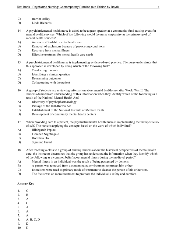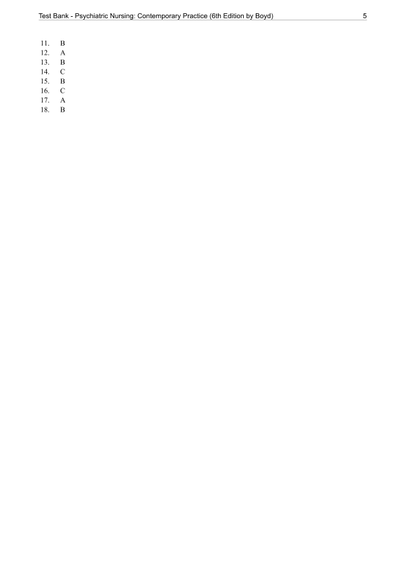 Test Bank Psychiatric Nursing Contemporary Practice 6th Edition by Boyd