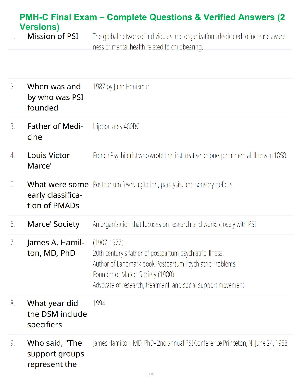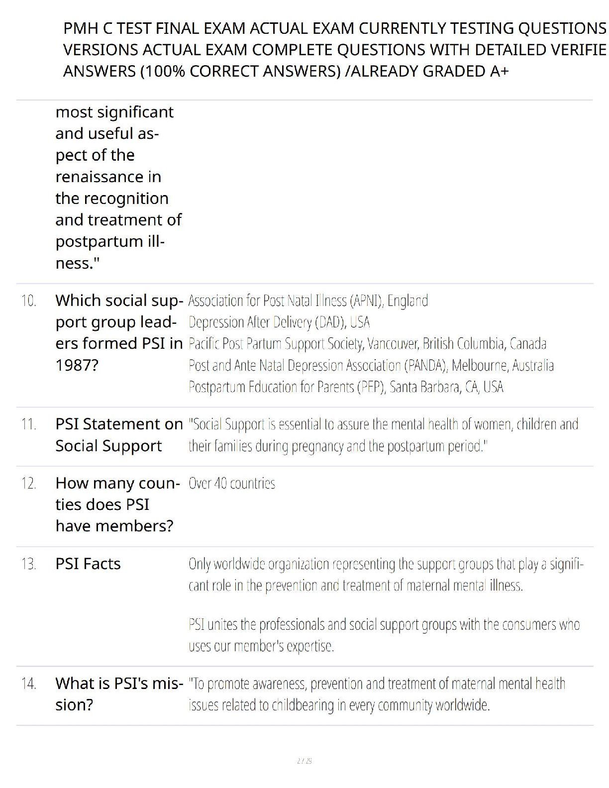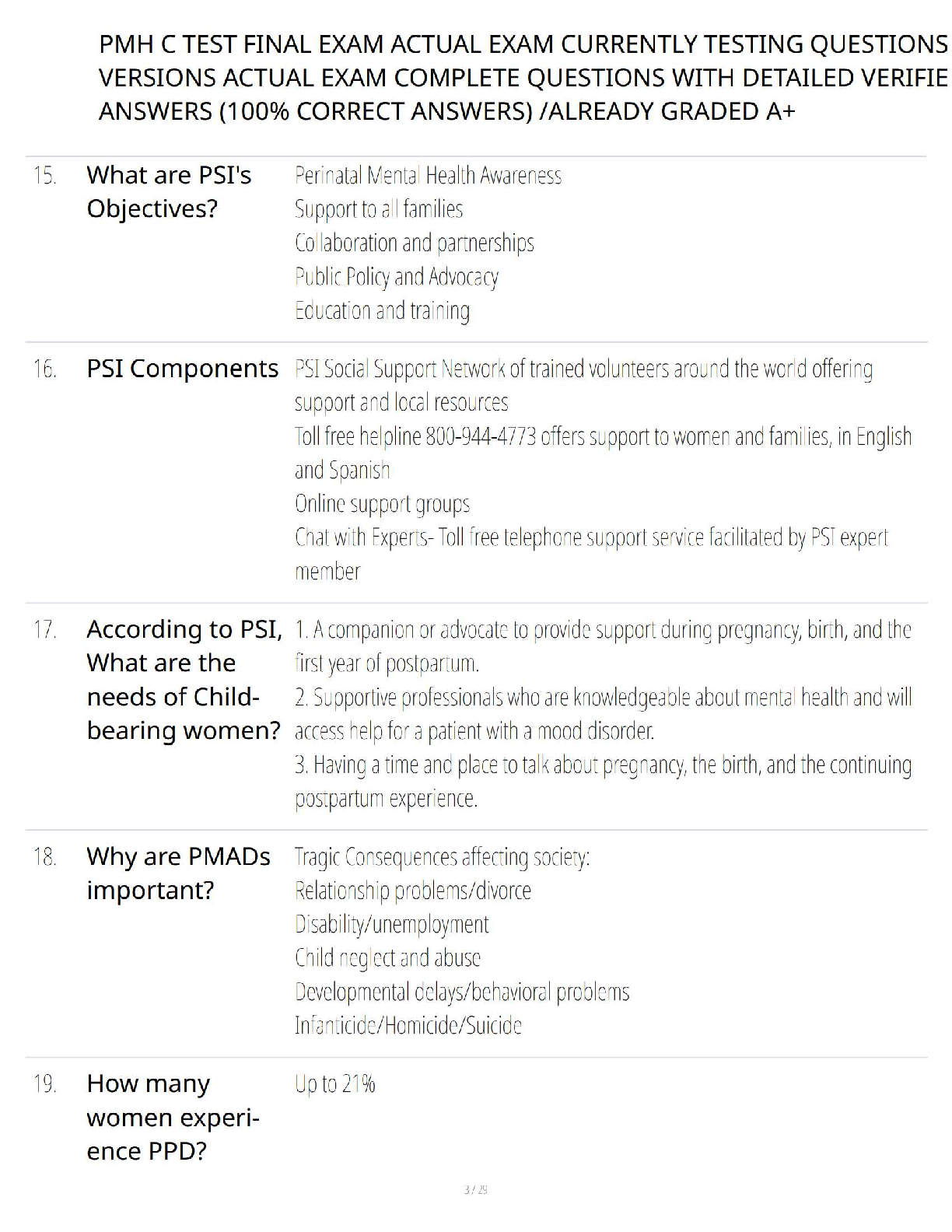 Perinatal Mental Health Certification (PMH-C) Exam Test Bank: Comprehensive Questions & Verified Answers (Latest Edition) to Pass Your Boards on the First Attempt