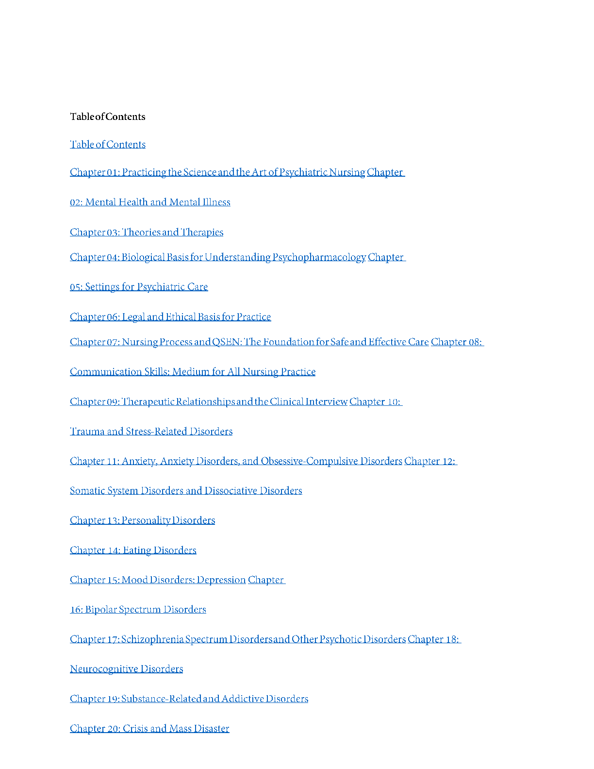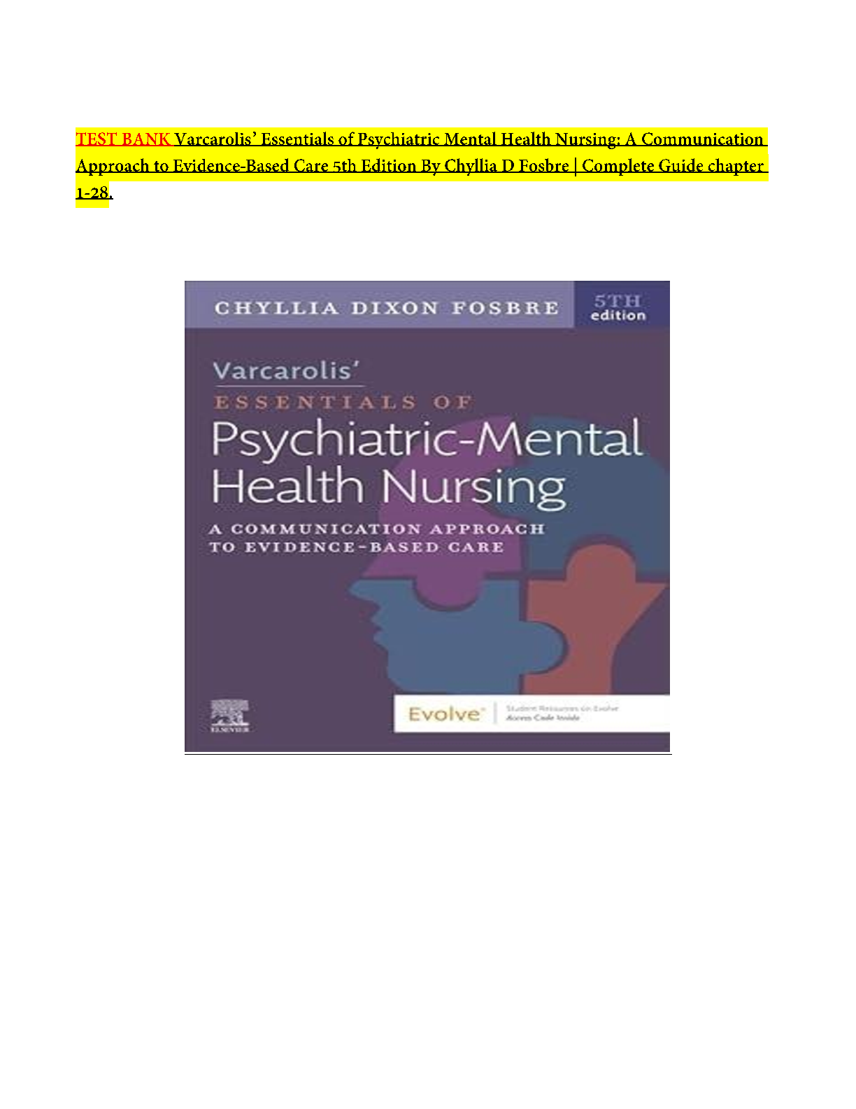 Comprehensive Test Bank: Varcarolis' Essentials of Psychiatric Mental Health Nursing, 5th Edition by Chyllia Dixon Fosbre - All Chapters 1-28