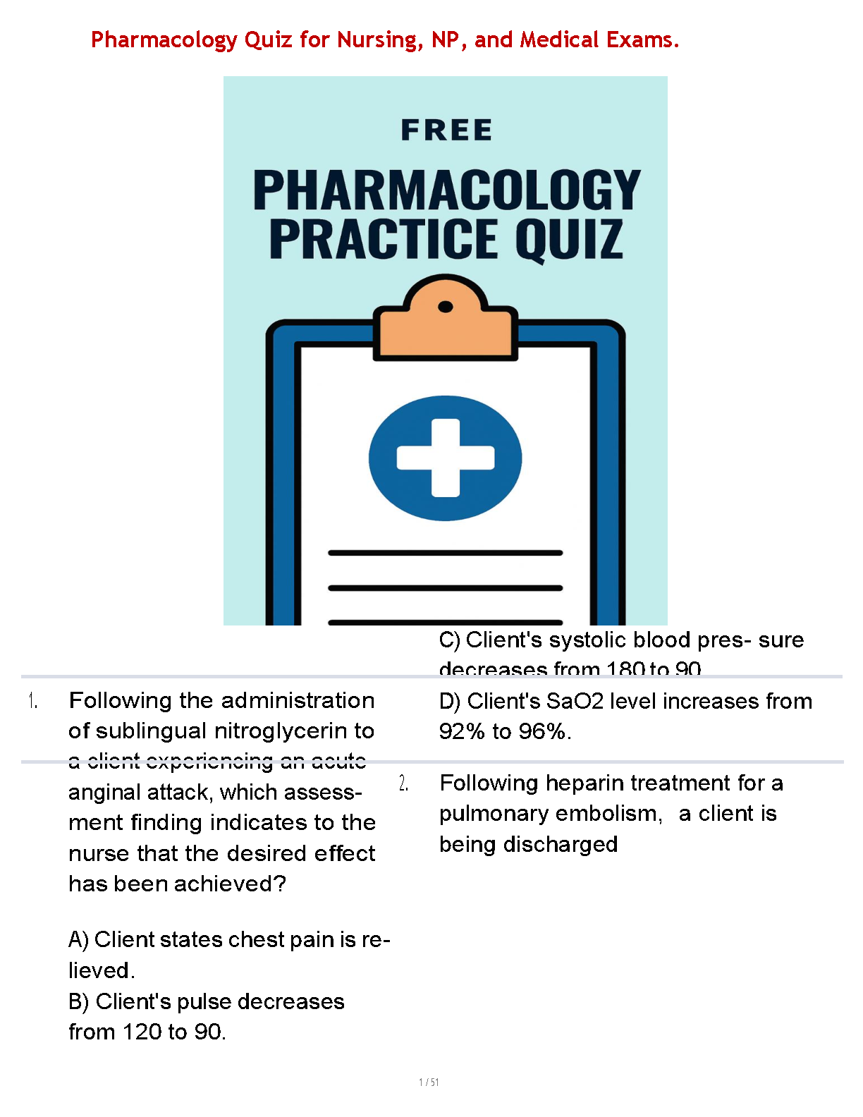 Pharmacology Practice Quiz Bank: Master Nursing, NP, & Medical Exams (51 Pages) - Pass on First Attempt & Avoid Resits!