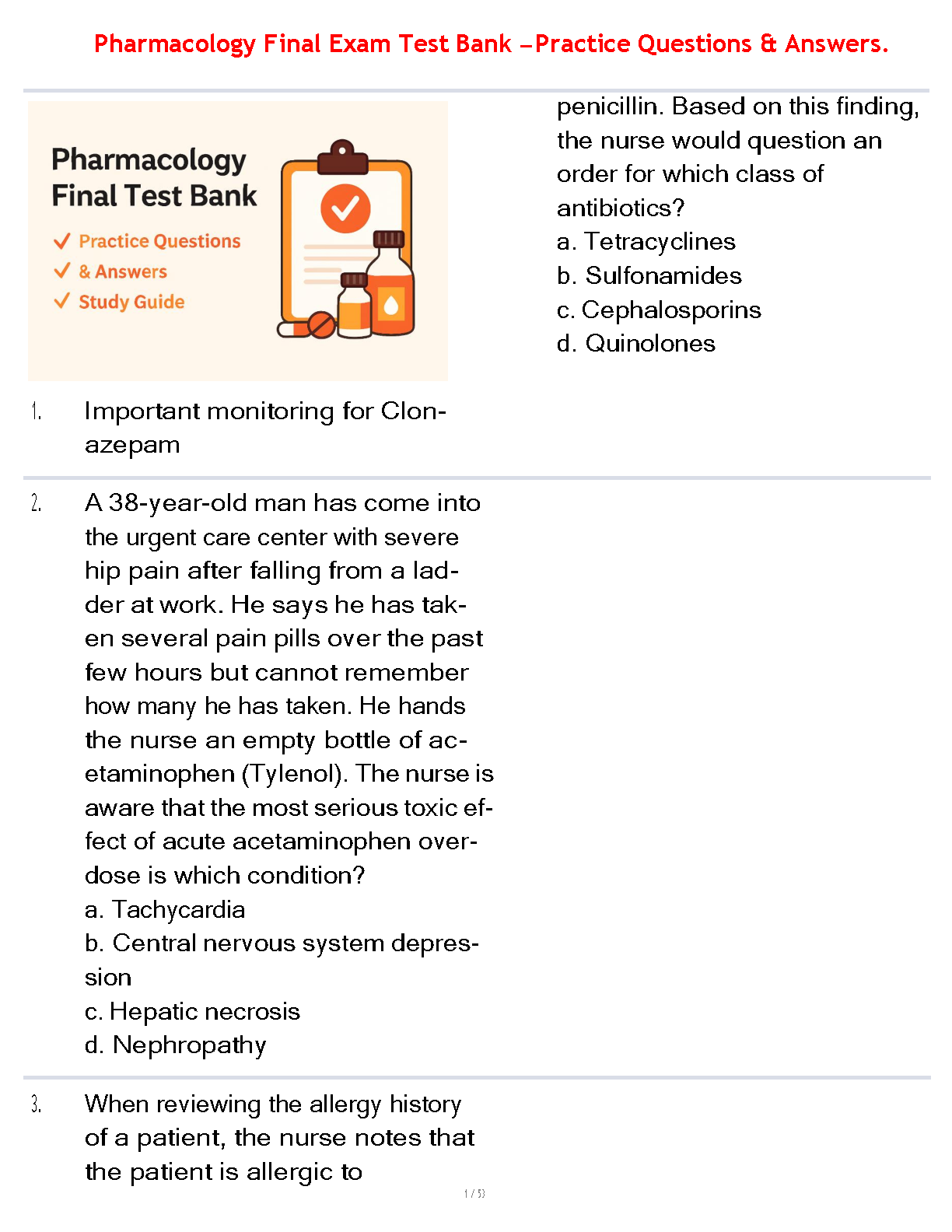 Master pharmacology with this comprehensive Final Exam Test Bank for Lehne's Pharmacology for Nursing Care, 11th Edition. Authored by renowned experts Richard A. Lehne and Laura Lacey, this invaluable resource offers hundreds of challenging practice questions and detailed answers designed to bolster your understanding of crucial drug classifications, mechanisms of action, side effects, and patient management. Perfect for nursing students and healthcare professionals aiming for top grades and first-attempt success in the 2025/2026 academic year. Utilize this essential study guide to solidify your knowledge, identify areas for improvement, and confidently pass your pharmacology examinations, ensuring you avoid resits.