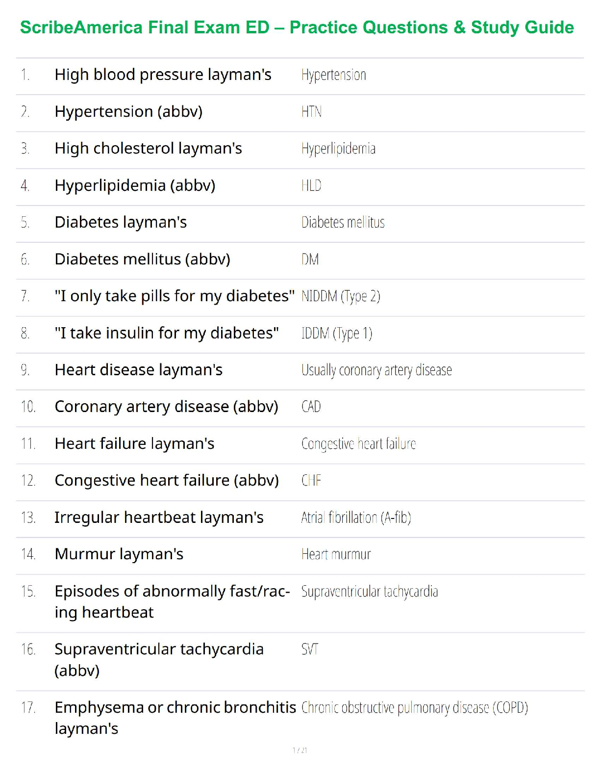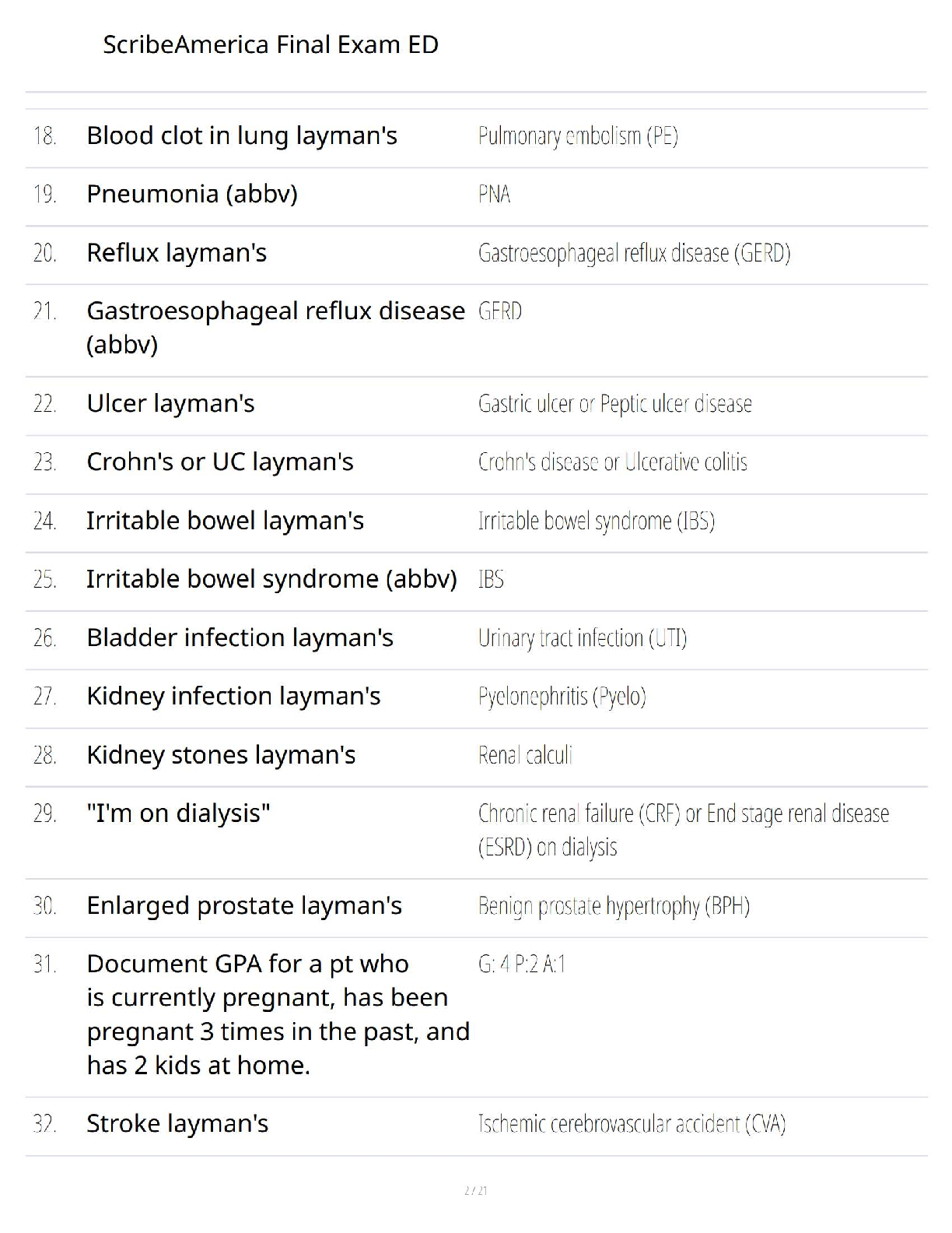 Prepare for the ScribeAmerica ED Final Exam with this comprehensive 2025/2026 study guide. Master critical medical terminology, common laymen's terms, and essential abbreviations frequently encountered in the Emergency Department. Designed to ensure you grasp key concepts thoroughly, this resource is your ultimate tool to confidently pass your ScribeAmerica exam on the first attempt and avoid costly resits. Perfect for medical scribe trainees and aspiring ED professionals seeking to excel in their certification.