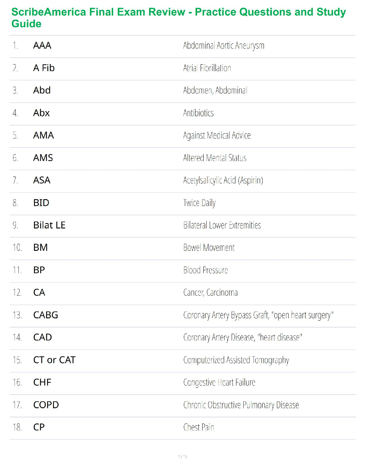 ScribeAmerica 2025/2026 Final Exam Review: Essential Medical Abbreviations & Terms for First-Attempt Success