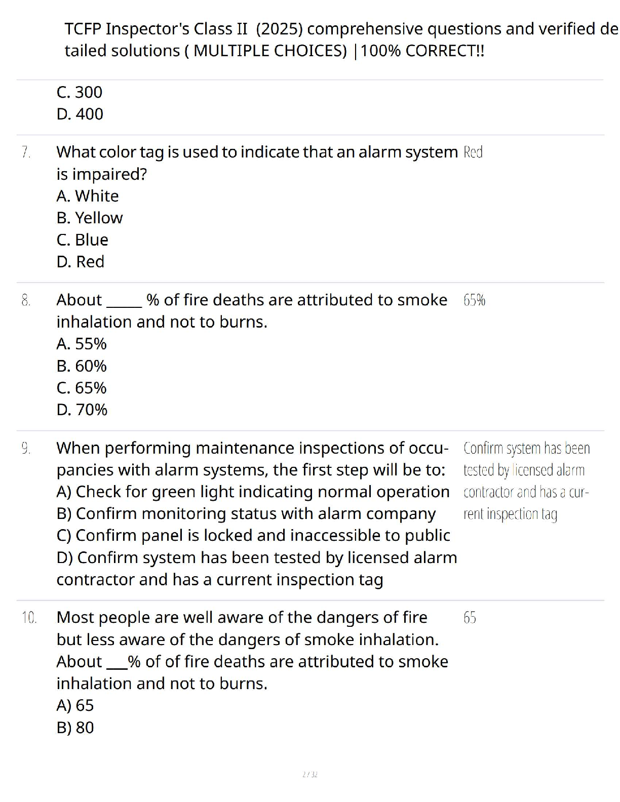TCFP Inspector Class II Exam 2025: Comprehensive Questions & Verified Solutions (Authors: TCFP)