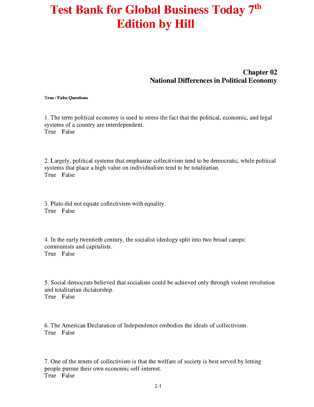 Test Bank for Global Business Today 7th Edition by Hill. DOWNLOAD on www.hackedexams.com INSTANTLY.