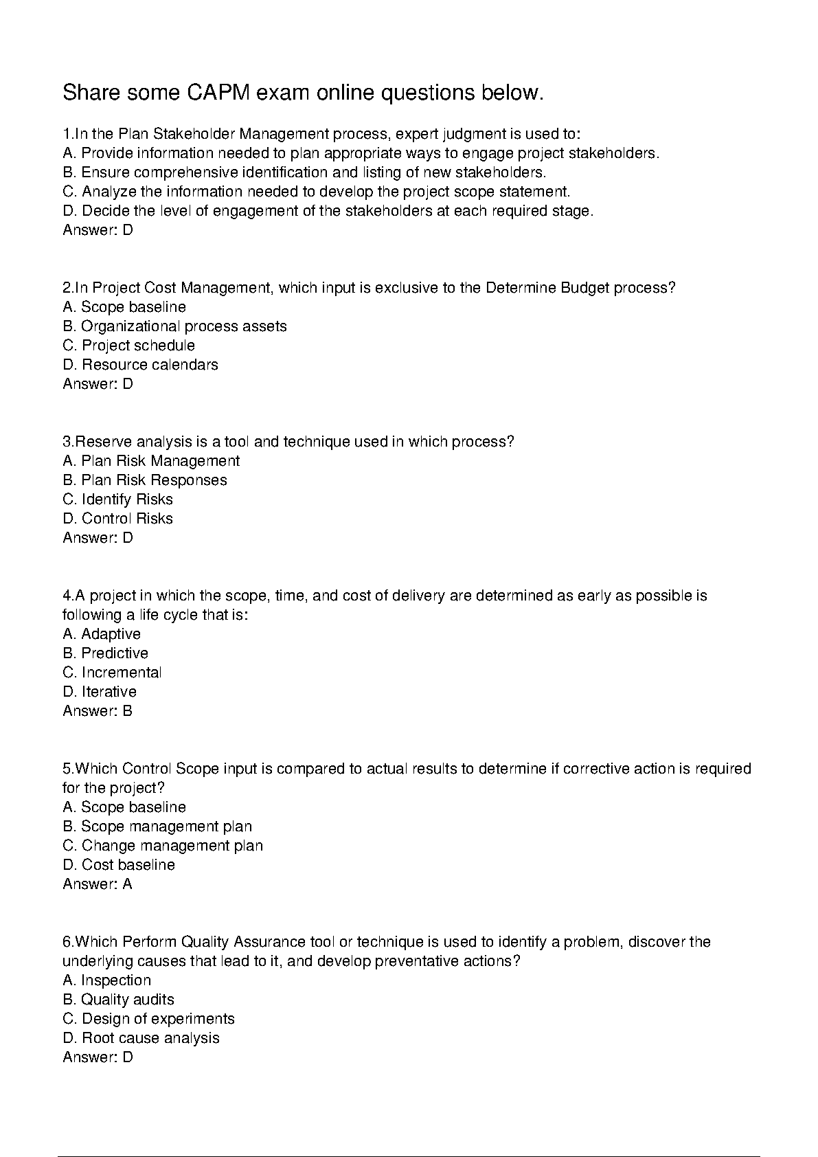 Master the Certified Associate in Project Management (CAPM) exam with this comprehensive Test Bank of practice questions, meticulously designed for the 2025/2026 academic year. This resource offers a curated collection of topic-focused questions, precisely mirroring the latest PMI CAPM exam objectives, structure, and difficulty. Each question includes accurate answer keys for effective self-review, helping you reinforce critical concepts, identify knowledge gaps, and simulate the actual test environment. Ideal for final exam preparation, daily practice, and ensuring you pass your CAPM certification on the first attempt, avoiding costly resits. Maximize your project management career potential with this essential study tool.