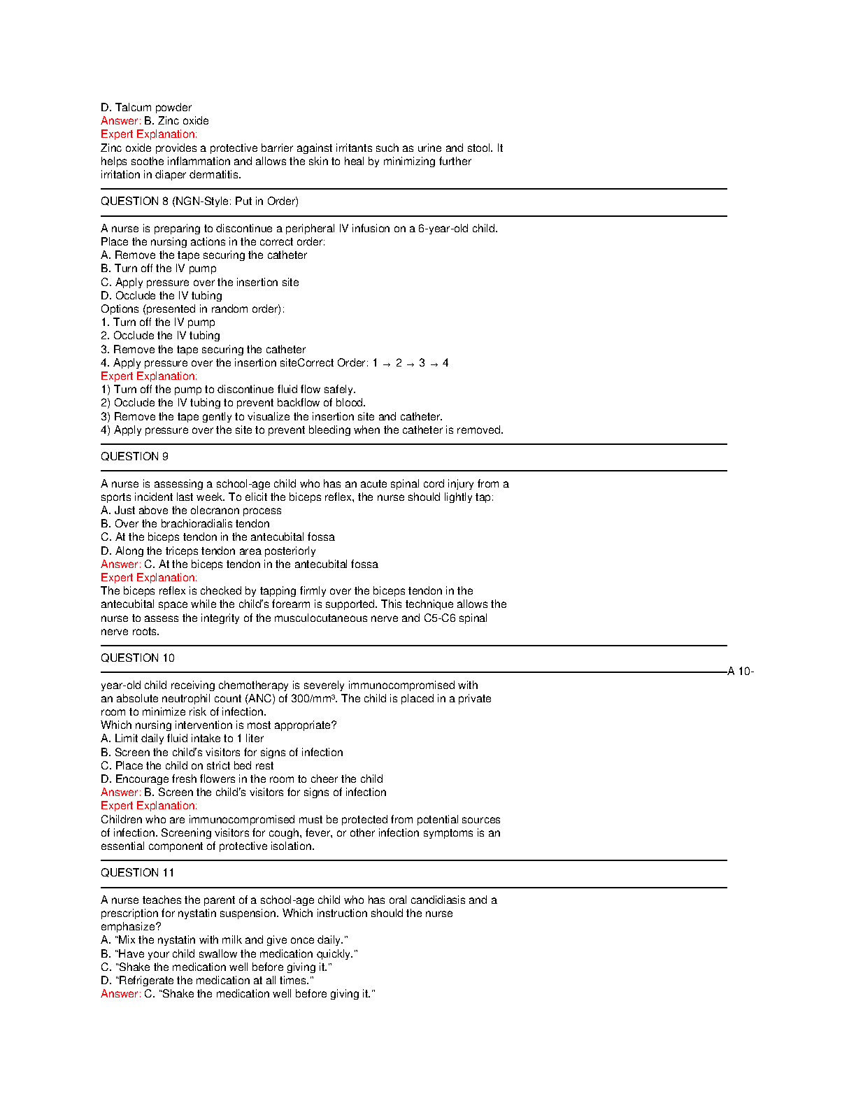 Master the ATI RN Pediatric Proctored Exam with this comprehensive 2025/2026 Test Bank, meticulously developed by ATI Nursing Education. This invaluable resource features 70 high-yield, Next Generation NCLEX (NGN)-style questions, complete with accurate answers and detailed, structured rationales. Designed to enhance your critical thinking and clinical judgment skills, this test bank effectively prepares you for complex pediatric nursing scenarios. Utilize this guide to confidently navigate your proctored exam, secure a passing score on your first attempt, and avoid costly resits. Each question closely mirrors the actual exam format and difficulty, ensuring you're fully equipped for success.
