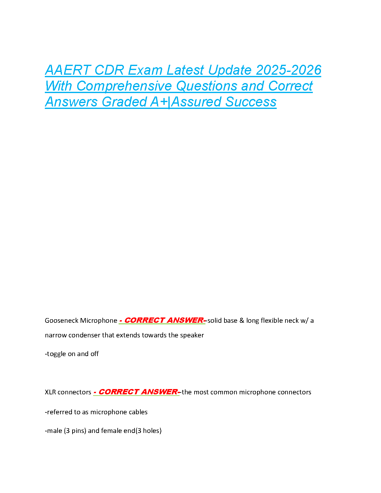 AAERT CDR Exam 2025-2026 Test Bank: A+ Graded Questions & Answers for First Attempt Success – Avoid Resits!