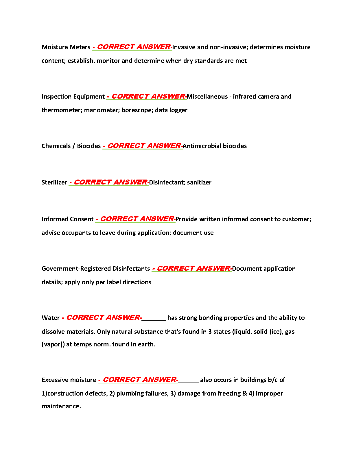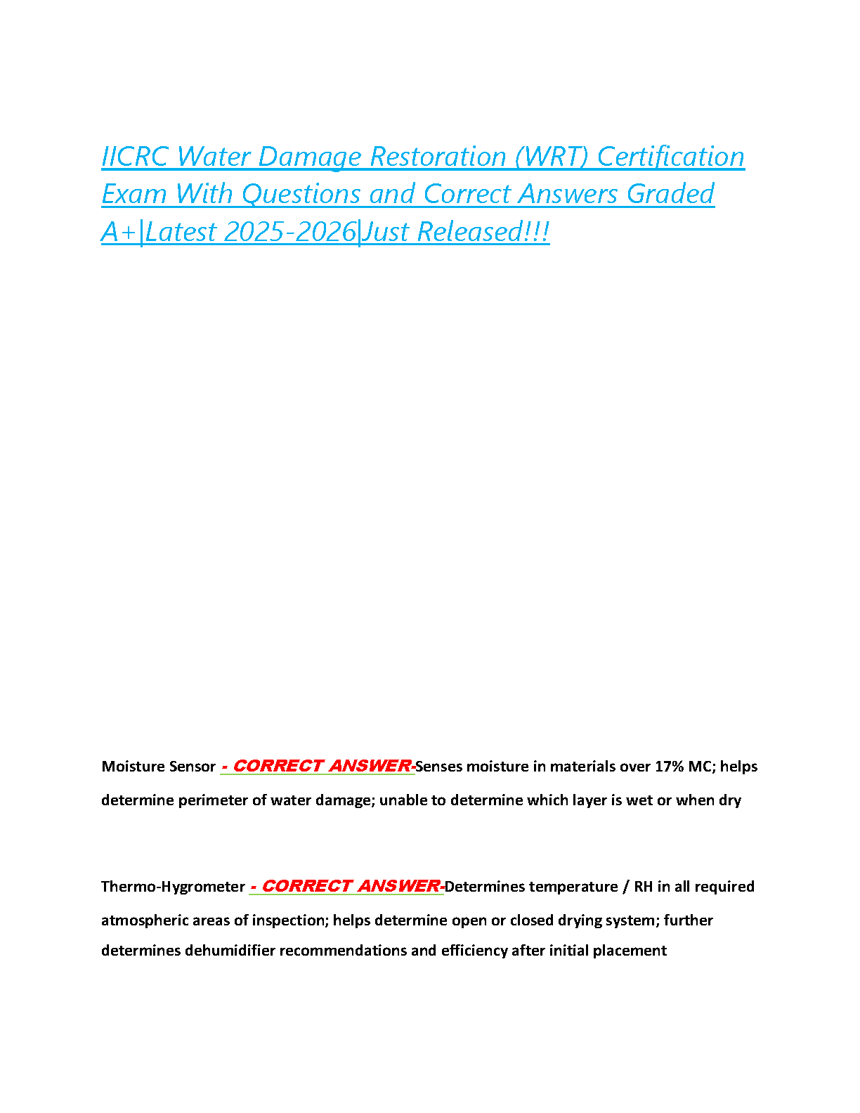 IICRC Water Damage Restoration (WRT) Certification Exam Prep: Latest 2025-2026 Questions & Answers by Renowned Experts