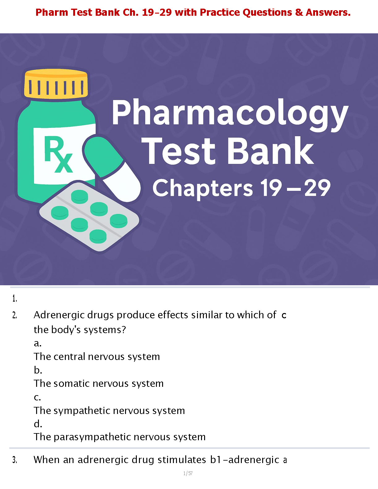 Pharmacology Test Bank, Chapters 19-29 with Practice Questions & Answers - Ideal for 2025/2026 Academic Year Success