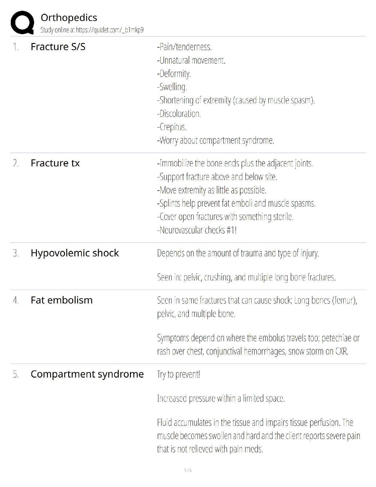 Orthopedics Study Guide: Fracture S/S, Treatment, Hypovolemic Shock, Fat Embolism & Compartment Syndrome | 2025/2026 Exam Prep