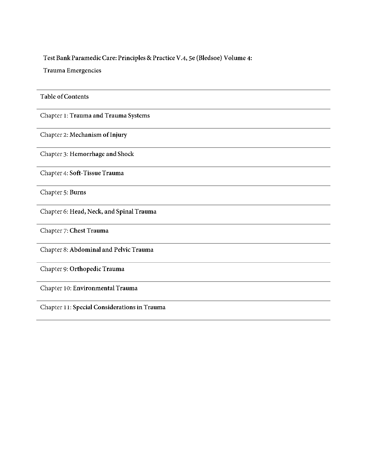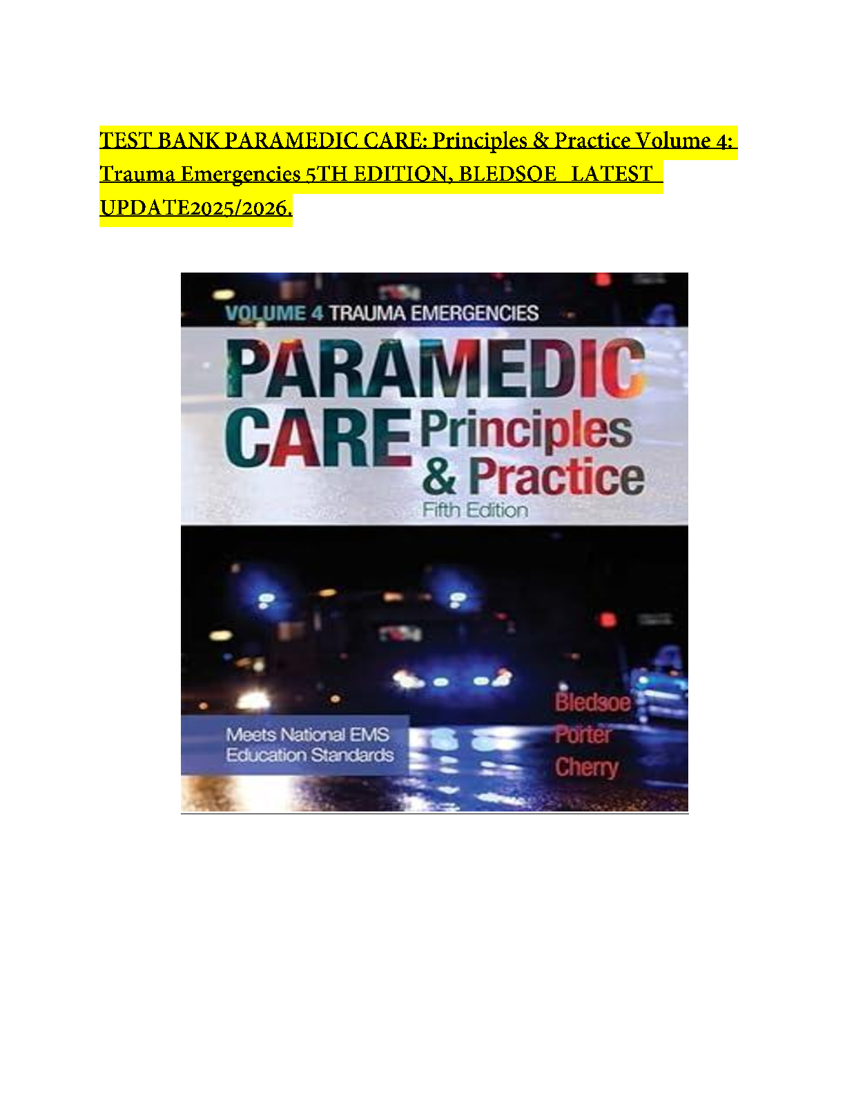 TEST BANK for Paramedic Care: Principles & Practice, Volume 4: Trauma Emergencies, 5th Edition by Bryan E. Bledsoe, Robert S. Porter, Richard A. Cherry - Latest 2025/2026 Update