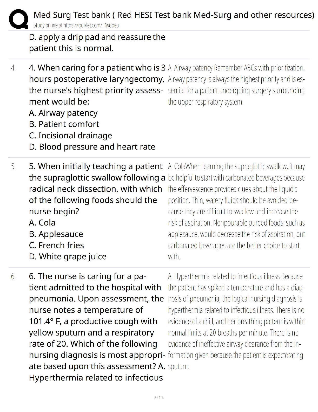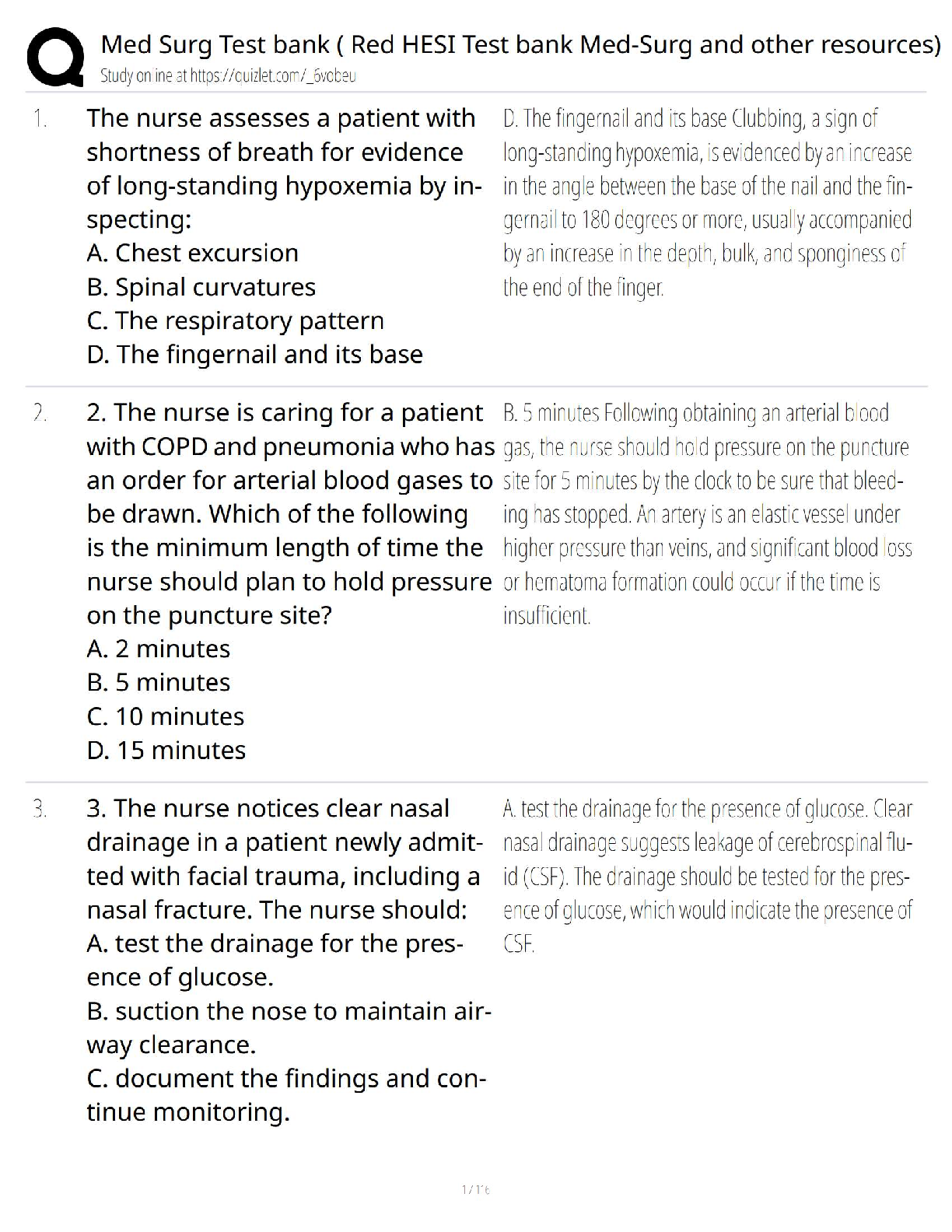 Master Medical-Surgical Nursing concepts and prepare for your HESI exams with this essential test bank, optimized for the 2025/2026 academic year. This comprehensive resource offers a collection of practice questions covering vital Med-Surg topics, designed to enhance your understanding, identify knowledge gaps, and build exam confidence. Ideal for nursing students aiming to pass their HESI assessments and subsequent licensure exams like the NCLEX on their first attempt, this test bank helps you avoid resits and solidify your path to a successful nursing career.