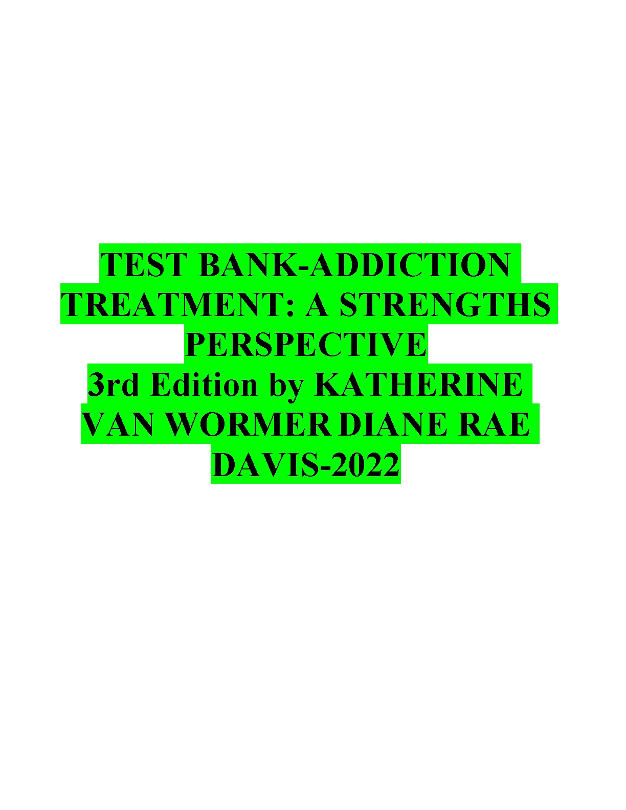 TEST BANK-ADDICTION TREATMENT: A STRENGTHS PERSPECTIVE 3rd Edition by KATHERINE VAN WORMER DIANE RAE DAVIS-