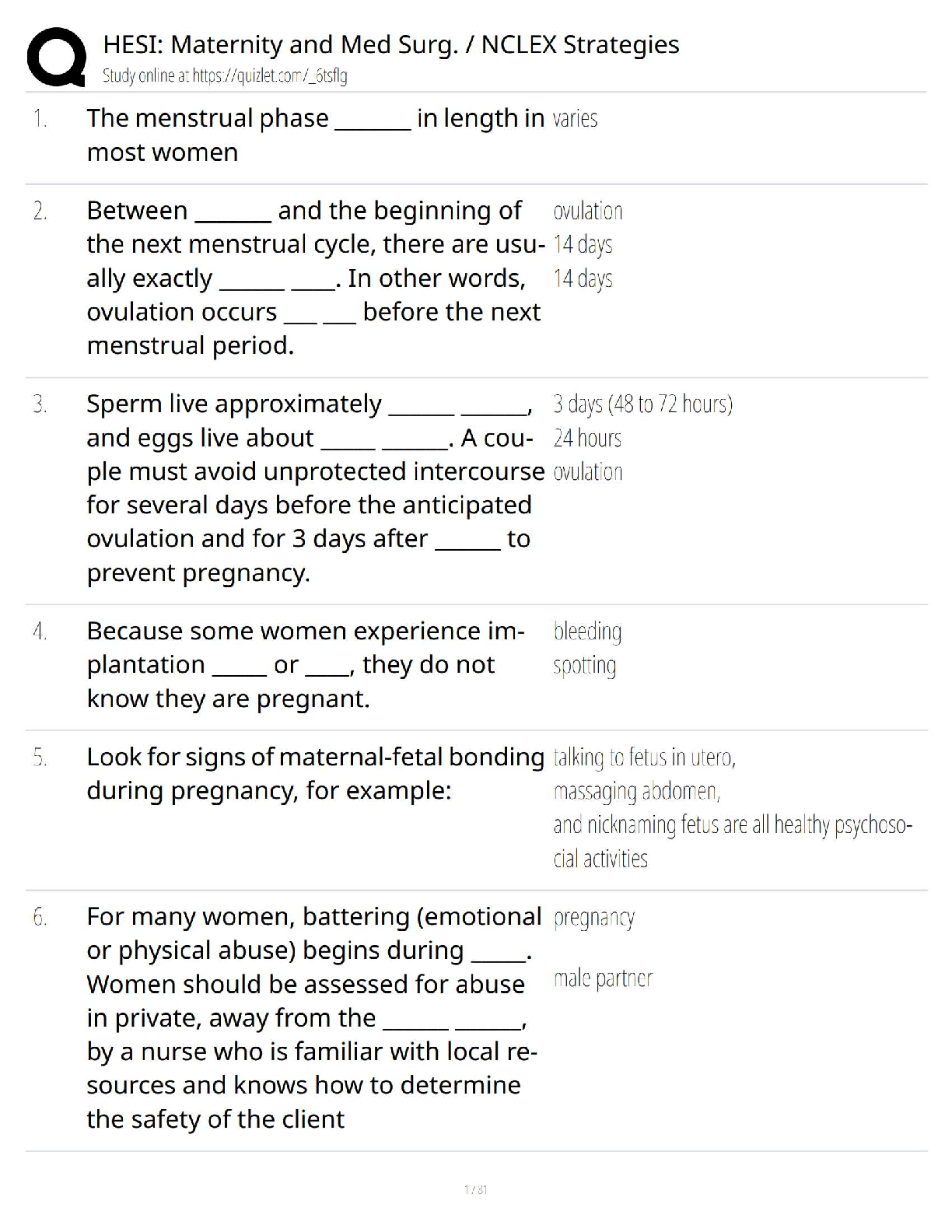 Ace your HESI exit exams and the NCLEX-RN® with this ultimate Maternity and Medical-Surgical Nursing Test Bank, specifically designed for the 2025/2026 academic year. Authored by HESI/Elsevier, this comprehensive resource provides crucial strategies and fill-in-the-blank questions covering key topics like the menstrual cycle, ovulation, pregnancy, maternal-fetal bonding, and patient safety assessments. Prepare effectively to ensure a first-attempt pass and confidently avoid resitting your nursing licensure examinations.