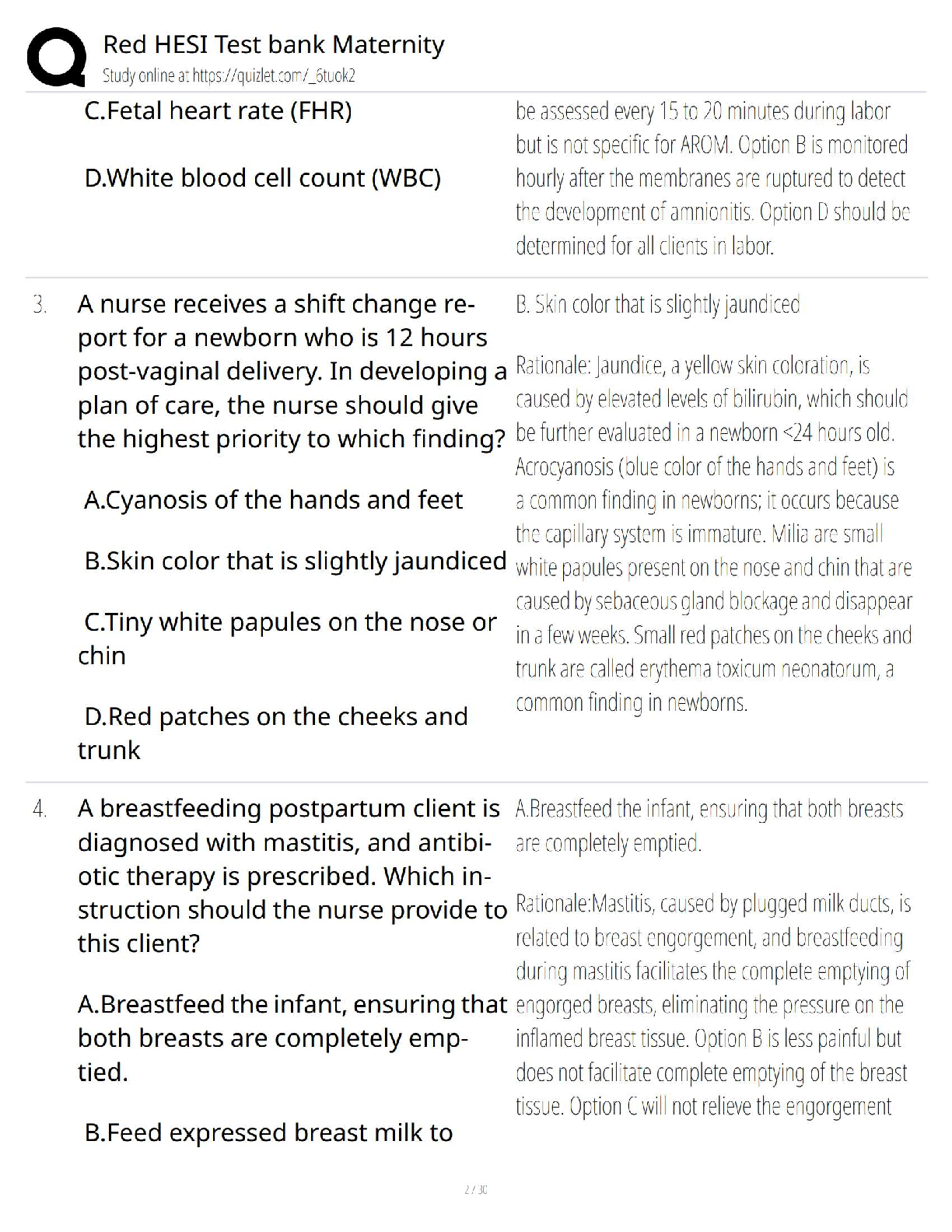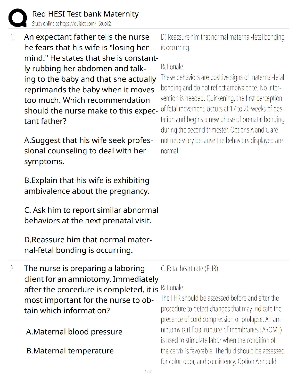 Prepare comprehensively for your HESI Maternity Nursing exams with this exclusive test bank, meticulously crafted by Elsevier's HESI Expert Team for the 2025/2026 academic year. This resource offers a wealth of challenging questions and detailed rationales covering essential maternal-newborn health concepts, from prenatal care and labor & delivery to postpartum and neonatal nursing. Designed to mirror the actual HESI exam format, it provides the critical practice needed to solidify your understanding, build confidence, and ensure you pass your exams on your first attempt, avoiding costly resits. Master crucial clinical decision-making skills and excel in your nursing career.