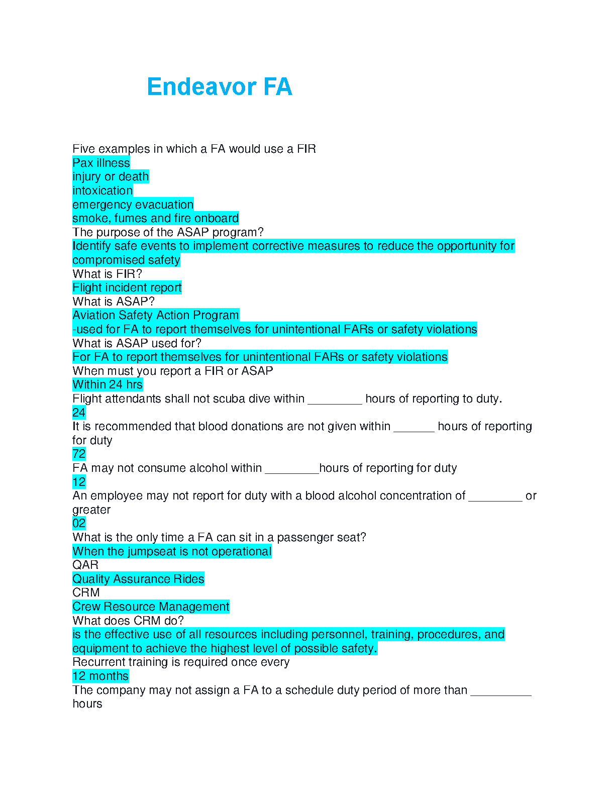 Endeavor FA: Comprehensive Flight Attendant Safety and Regulations Guide (2025/2026 Academic Year)