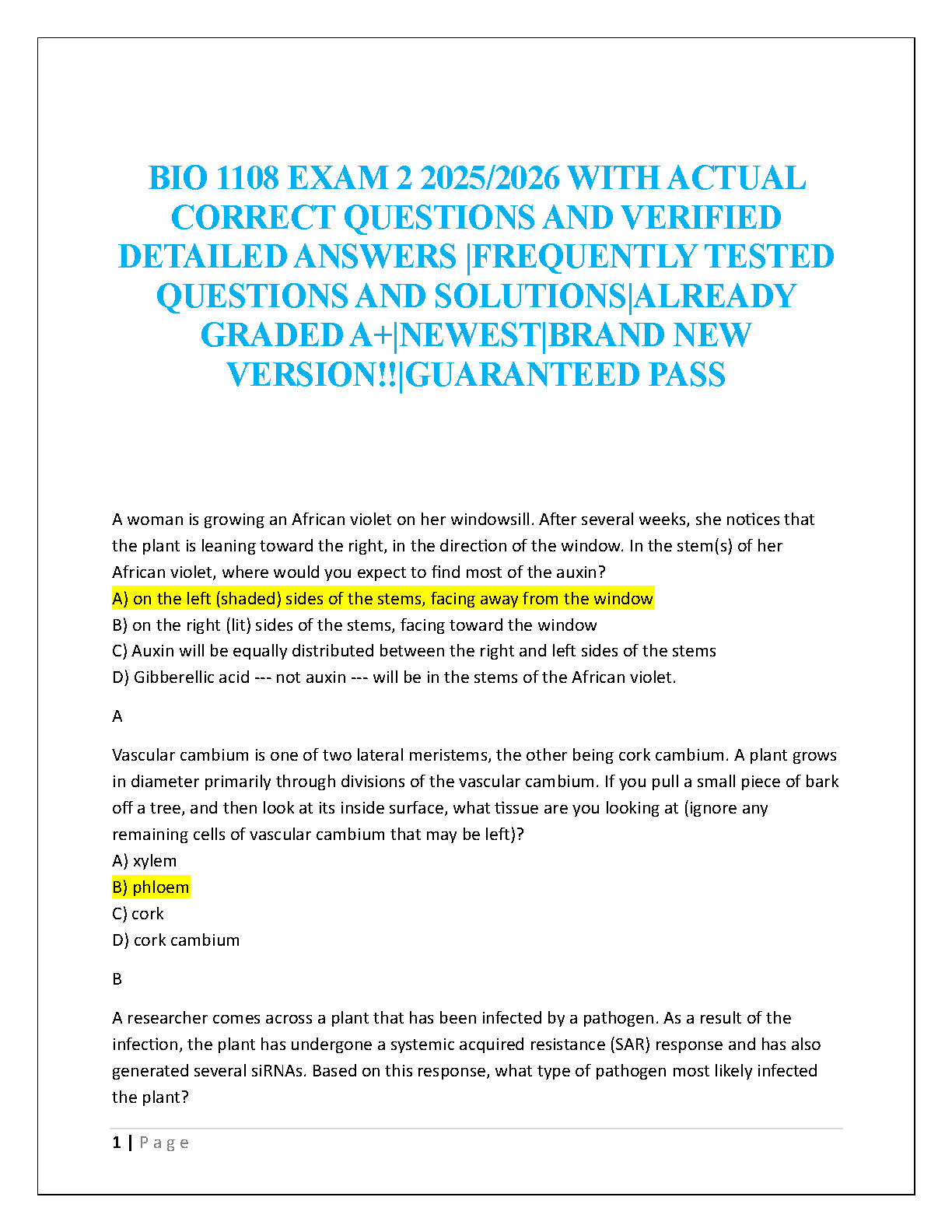 BIO 1108 Exam 2 (2025/2026 Edition): Verified Questions & Solutions for First-Attempt Success by Multiple Authors