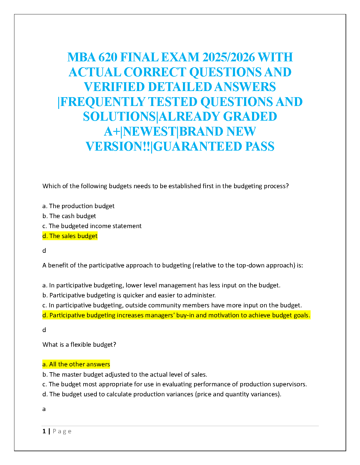 Unlock guaranteed success for your MBA 620 Final Exam 2025/2026 with this ultimate Test Bank. Featuring the newest collection of actual, frequently tested questions, meticulously verified correct answers, and comprehensive detailed solutions, this resource is your key to achieving an A+ grade. Specifically designed to ensure you pass your exams on the very first attempt and avoid any resits, this brand-new version provides unparalleled preparation. Master the core concepts, confidently tackle challenging questions, and secure your academic success.