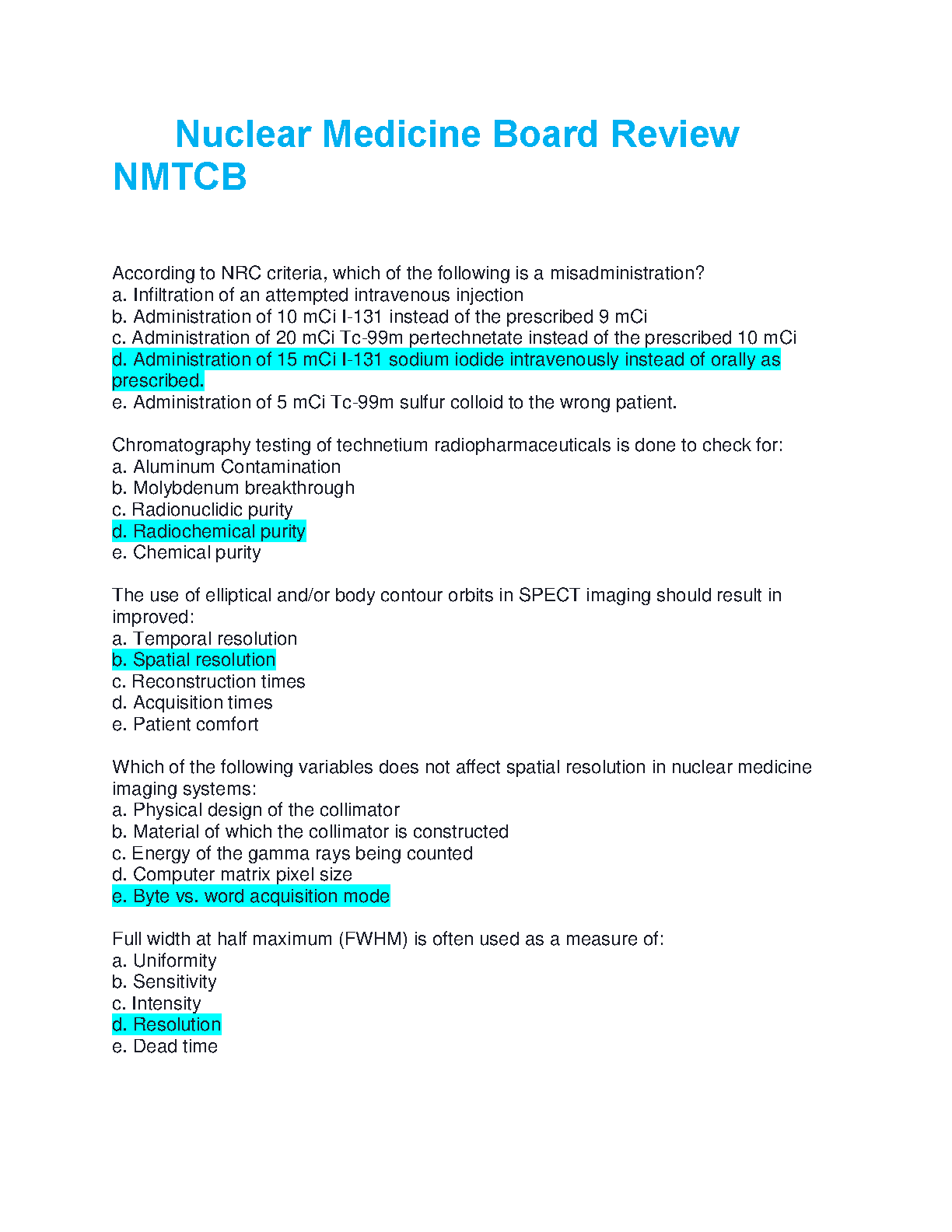 Nuclear Medicine Board Review NMTCB: Comprehensive Questions and Answers for 2025/2026 Exam Success