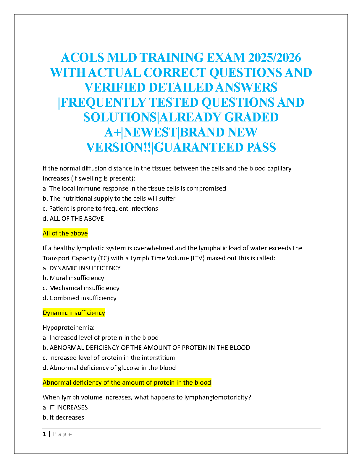 ACOLS Manual Lymphatic Drainage (MLD) Training Exam 2025/2026 - A+ Graded Test Bank with Verified Questions & Detailed Solutions for Guaranteed First Attempt Pass