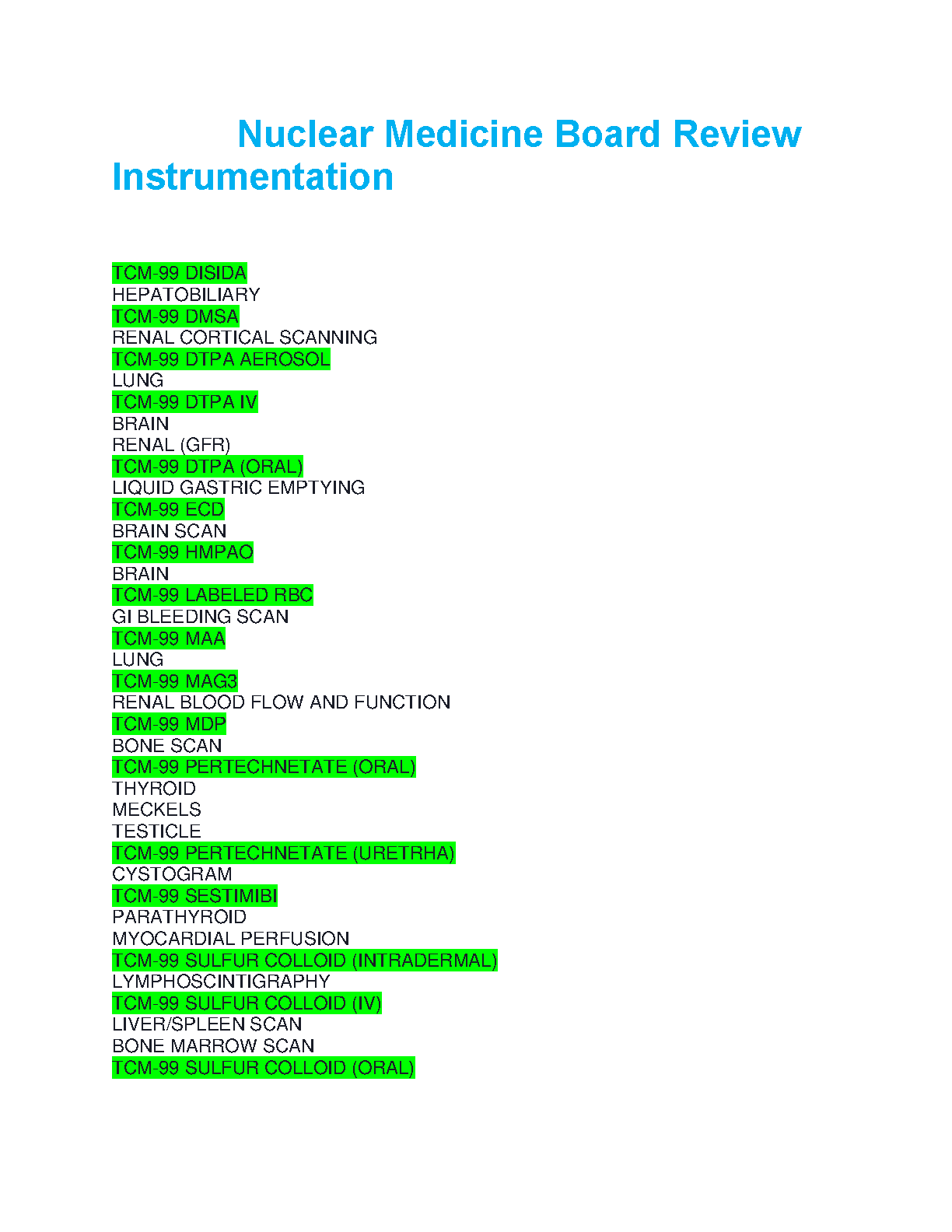 Ace your Nuclear Medicine board certification exams with this comprehensive review guide focused on instrumentation and key radionuclide procedures. This resource is designed for the 2025/2026 academic year, providing students with the essential knowledge to excel and avoid resits.