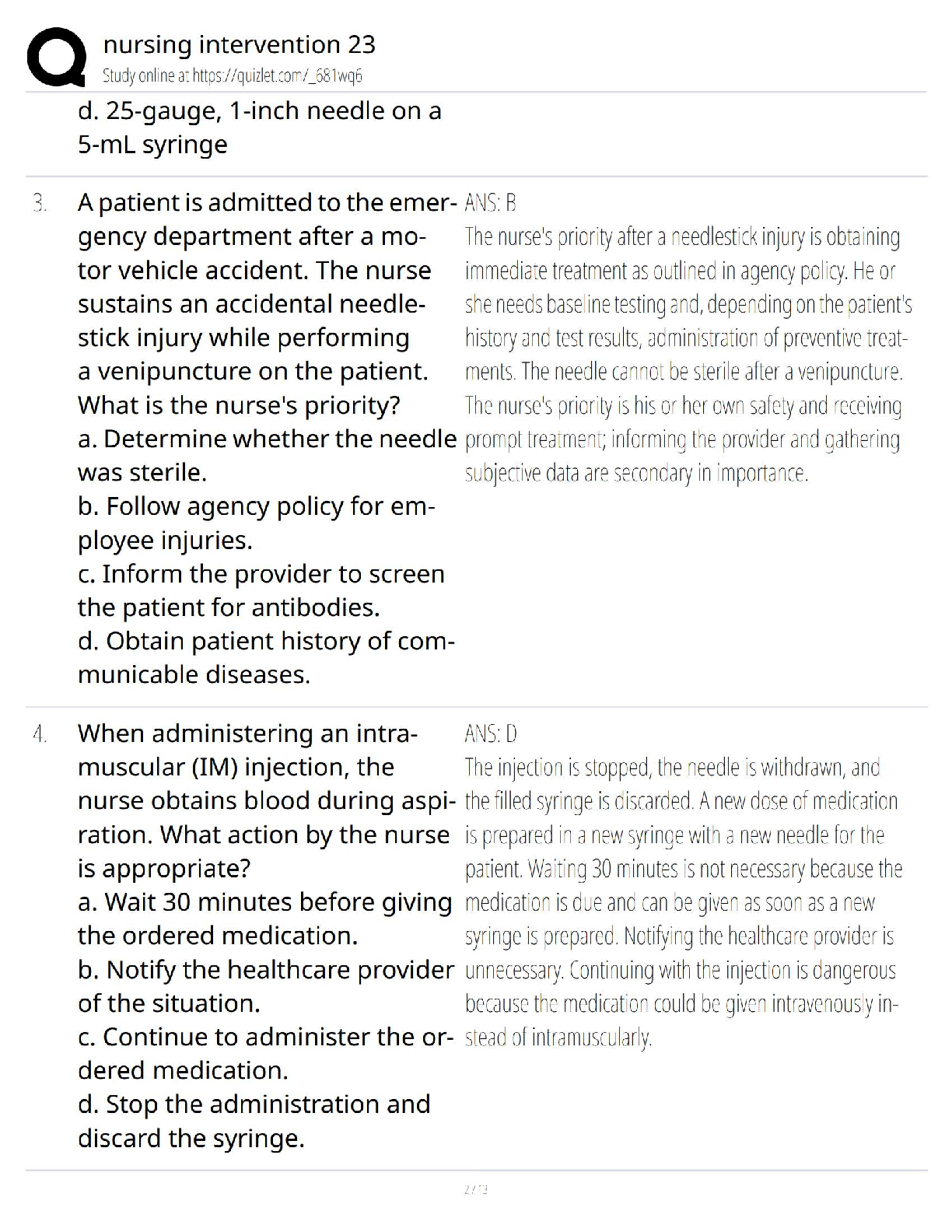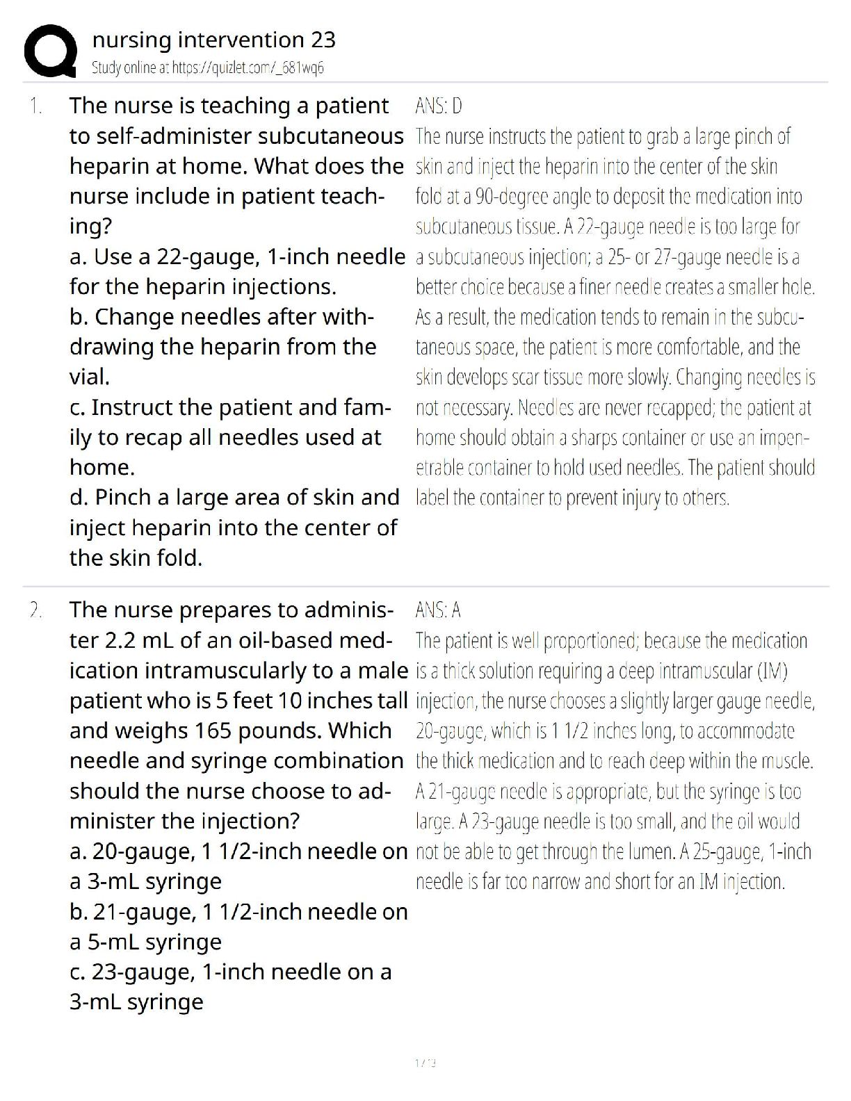 Unlock a deeper understanding of critical nursing interventions with this comprehensive test bank, aligned with core concepts from leading nursing curricula. Featuring practice questions on essential skills such as subcutaneous heparin administration, appropriate needle and syringe selection for intramuscular injections, and vital patient education, this resource provides detailed answer explanations. Perfect for nursing students preparing for their NCLEX exams, HESI, ATI, or seeking to excel in clinical practice, these questions are designed to reinforce fundamental principles and develop strong clinical judgment. Prepare effectively and ensure success in mastering key nursing care competencies.