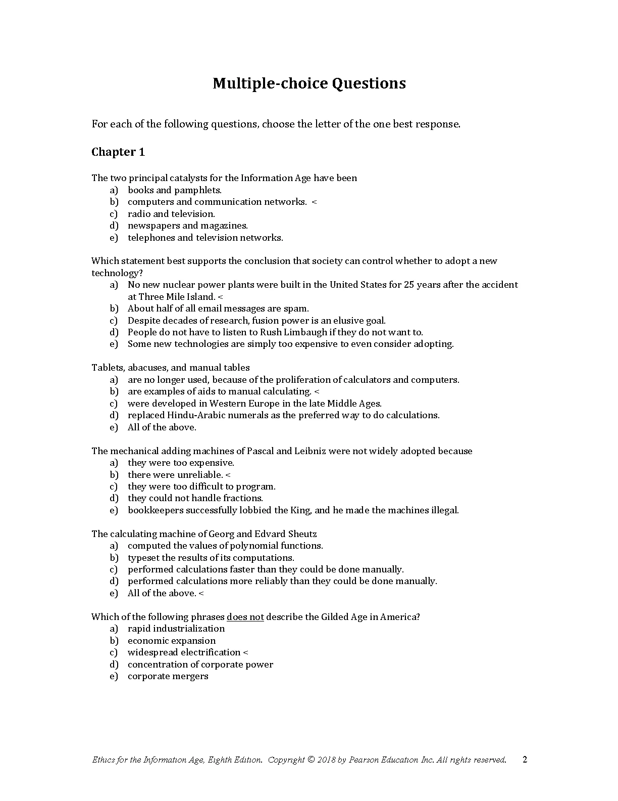 TEST BANK FOR Ethics for the Information Age, Eighth Edition BY QUINN