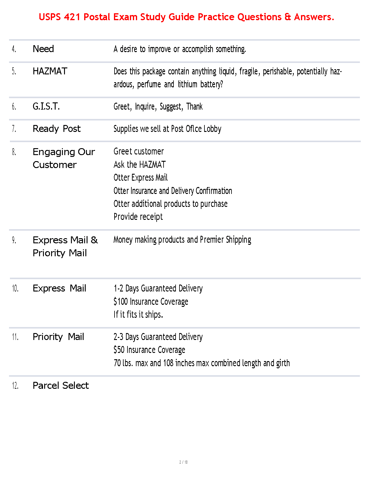 Ace your USPS 421 Postal Exam on your first attempt with this comprehensive study guide. Featuring practice questions and detailed answers, this resource is designed to equip you with the knowledge needed to succeed and avoid resits. Prepare thoroughly for the 2025/2026 academic year with essential insights into postal operations and policies.