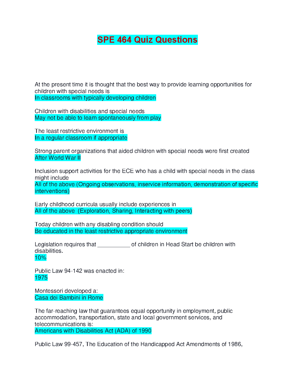 SPE 464 Test Bank: An Introduction to Young Children with Special Needs, 5th Edition by Richard M. Gargiulo & Jennifer L. Kilgo