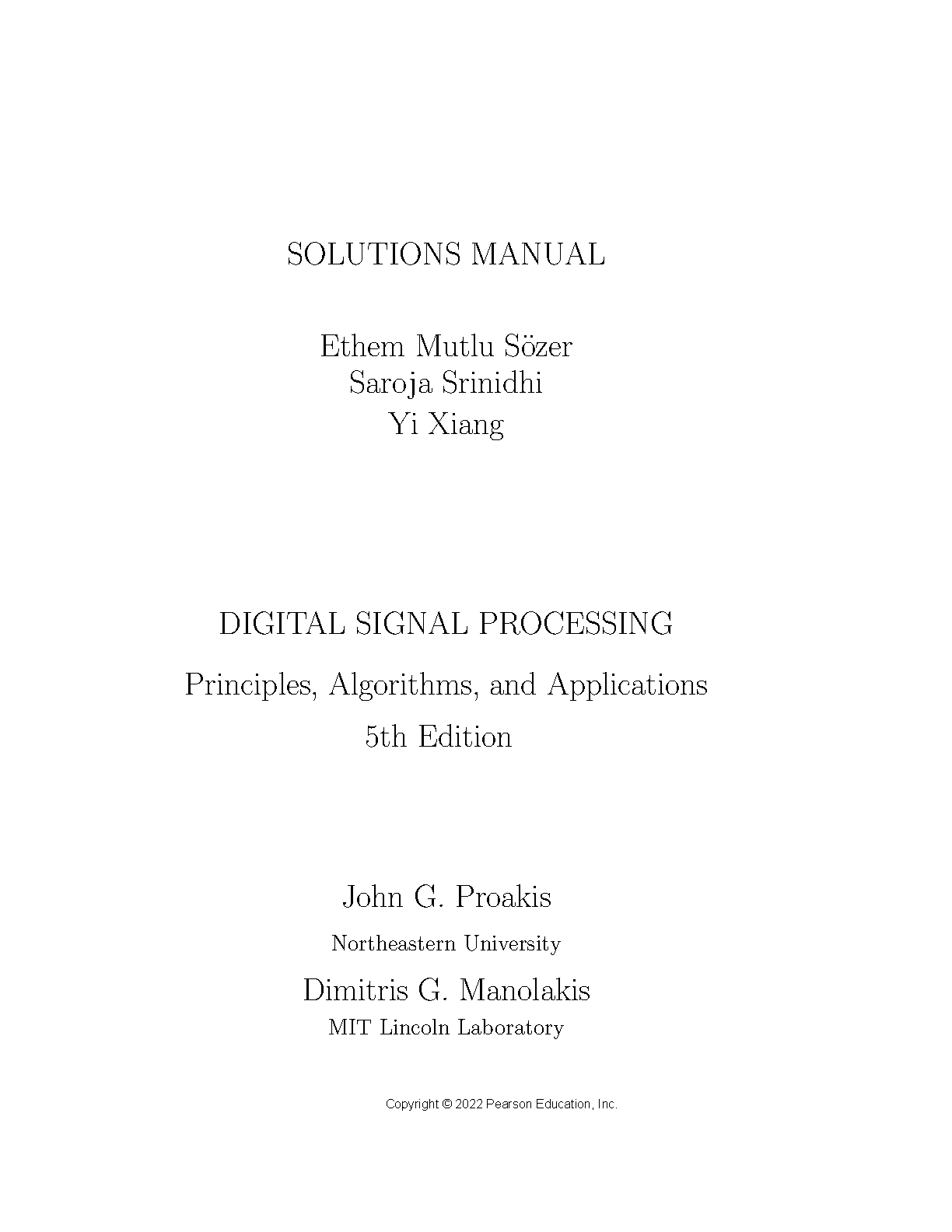 Gain a comprehensive edge in your studies with the official Solutions Manual for 'Digital Signal Processing: Principles, Algorithms, and Applications,' 5th Edition. Authored by John G. Proakis and Dimitris G. Manolakıs, this guide provides meticulously detailed, step-by-step solutions to every end-of-chapter problem in the textbook. It is an indispensable resource for mastering complex concepts, verifying homework, and preparing effectively for exams to achieve top grades.
