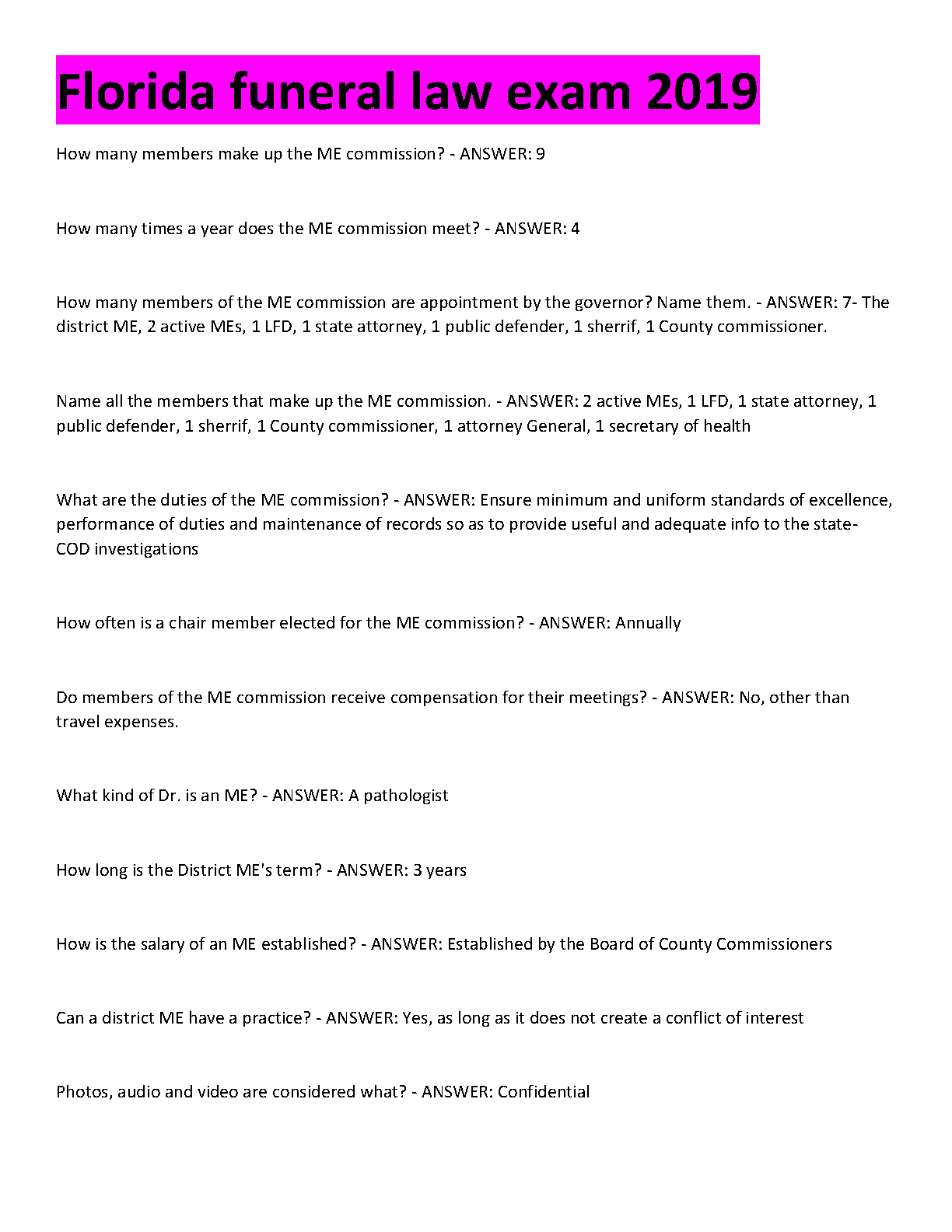 Ace your Florida Funeral Law examination with our newly updated 2025/2026 study guide. This comprehensive resource is expertly designed to help you pass on your very first try and avoid costly resits. Inside, you'll find a meticulously curated collection of exam-style questions and verified answers, covering critical topics such as the structure and duties of the Medical Examiner (ME) commission, appointments, term lengths, and procedural rules. The straightforward Q&A format makes studying efficient and effective, allowing you to master the essential knowledge needed for certification. Prepare with confidence and take the next step in your career with this indispensable guide.