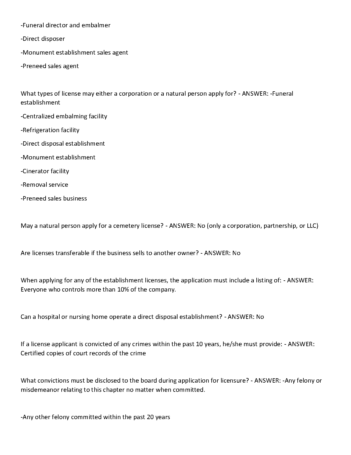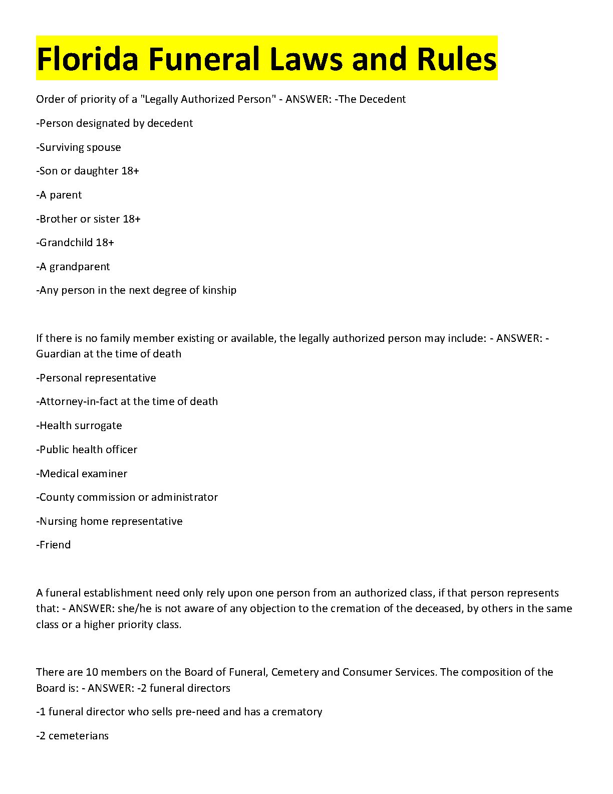 Florida Funeral Laws and Rules Exam Test Bank: Latest Questions and Verified Answers for State Board Certification