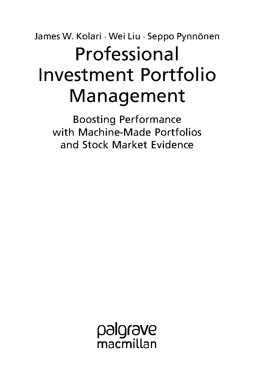 Test Bank for Professional Investment Portfolio Management, 1st Edition by James W. Kolari, Wei Liu, and Seppo Pynnönen