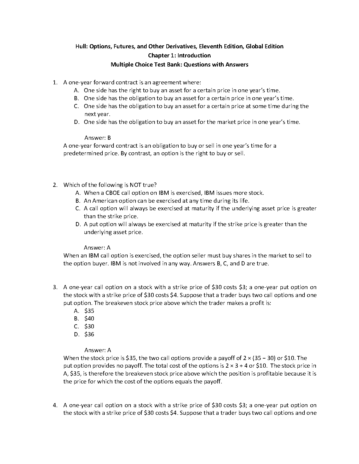 Test Bank for Options, Futures, and Other Derivatives, 11th Global Edition by John C. Hull