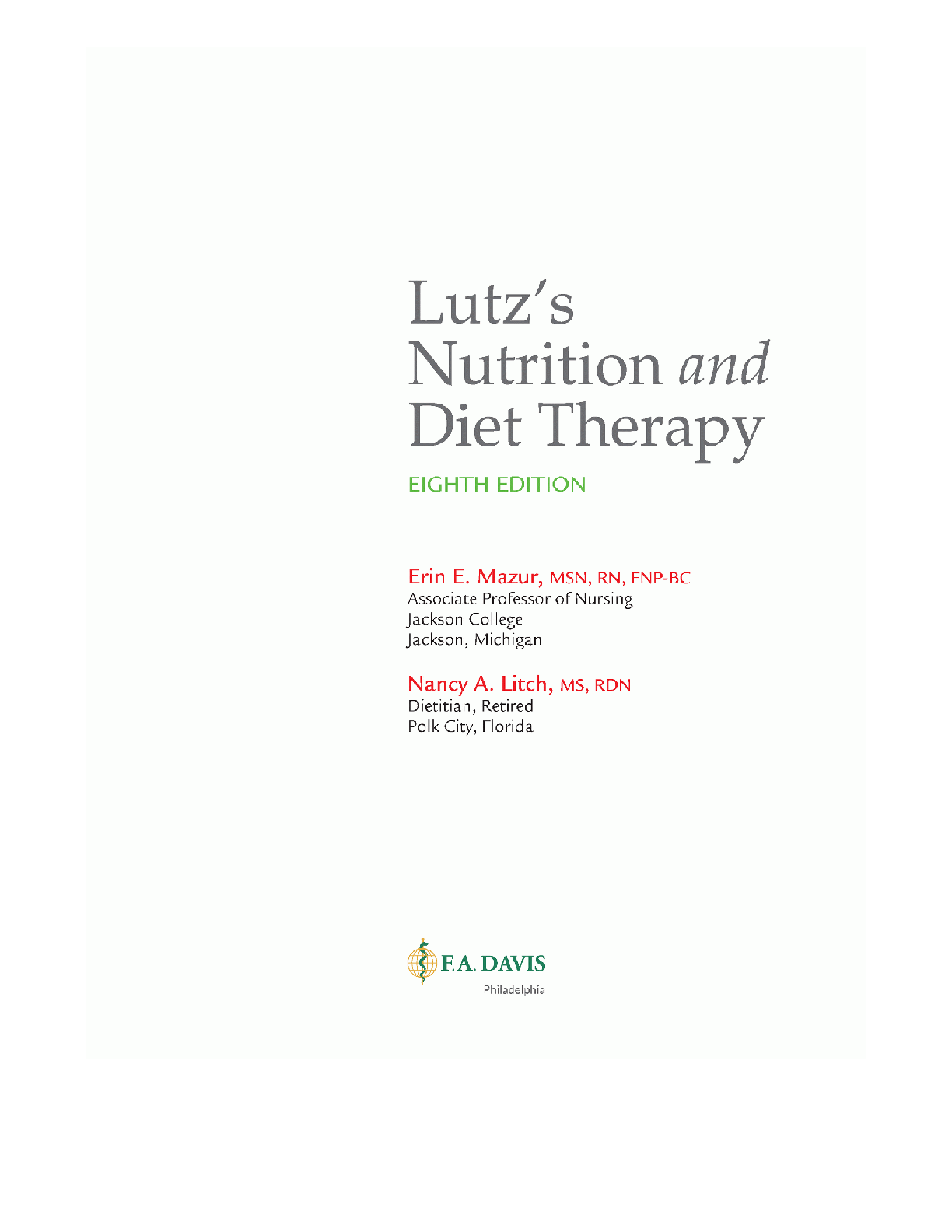 Test Bank for Lutz's Nutrition and Diet Therapy, 8th Edition by Erin E. Mazur & Nancy A. Litch