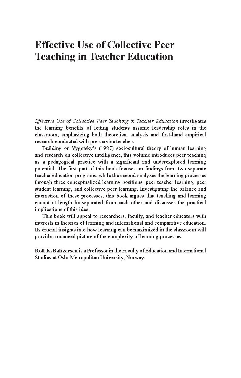 Effective Use of Collective Peer Teaching in Teacher Education, 1st Edition by Rolf K. Baltzersen - Latest 2025/2026 Guide to Ace Your Exams