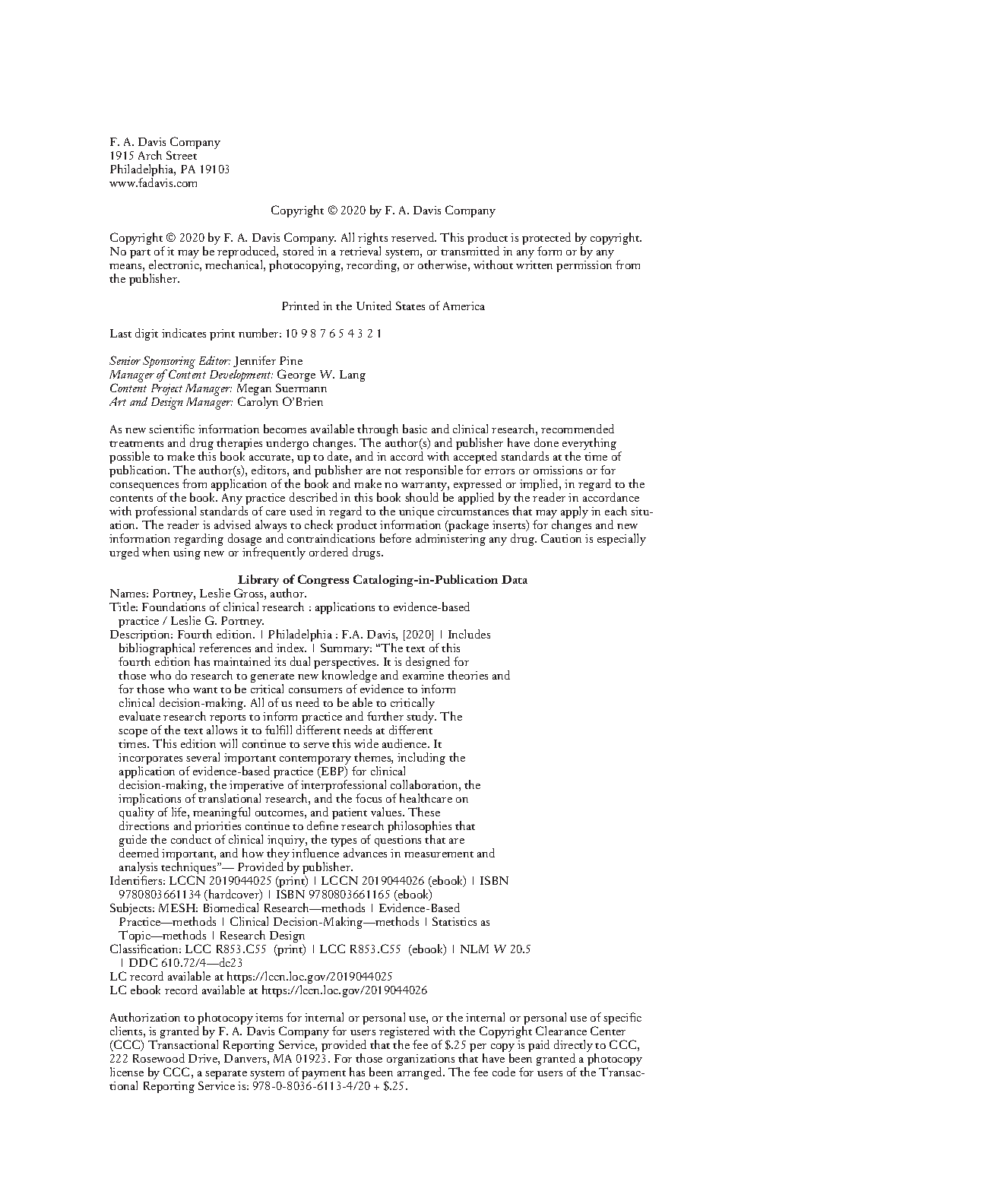 Test Bank for Foundations of Clinical Research: Applications to Evidence-Based Practice, 4th Edition by Leslie G. Portney, Mary P. Watkins