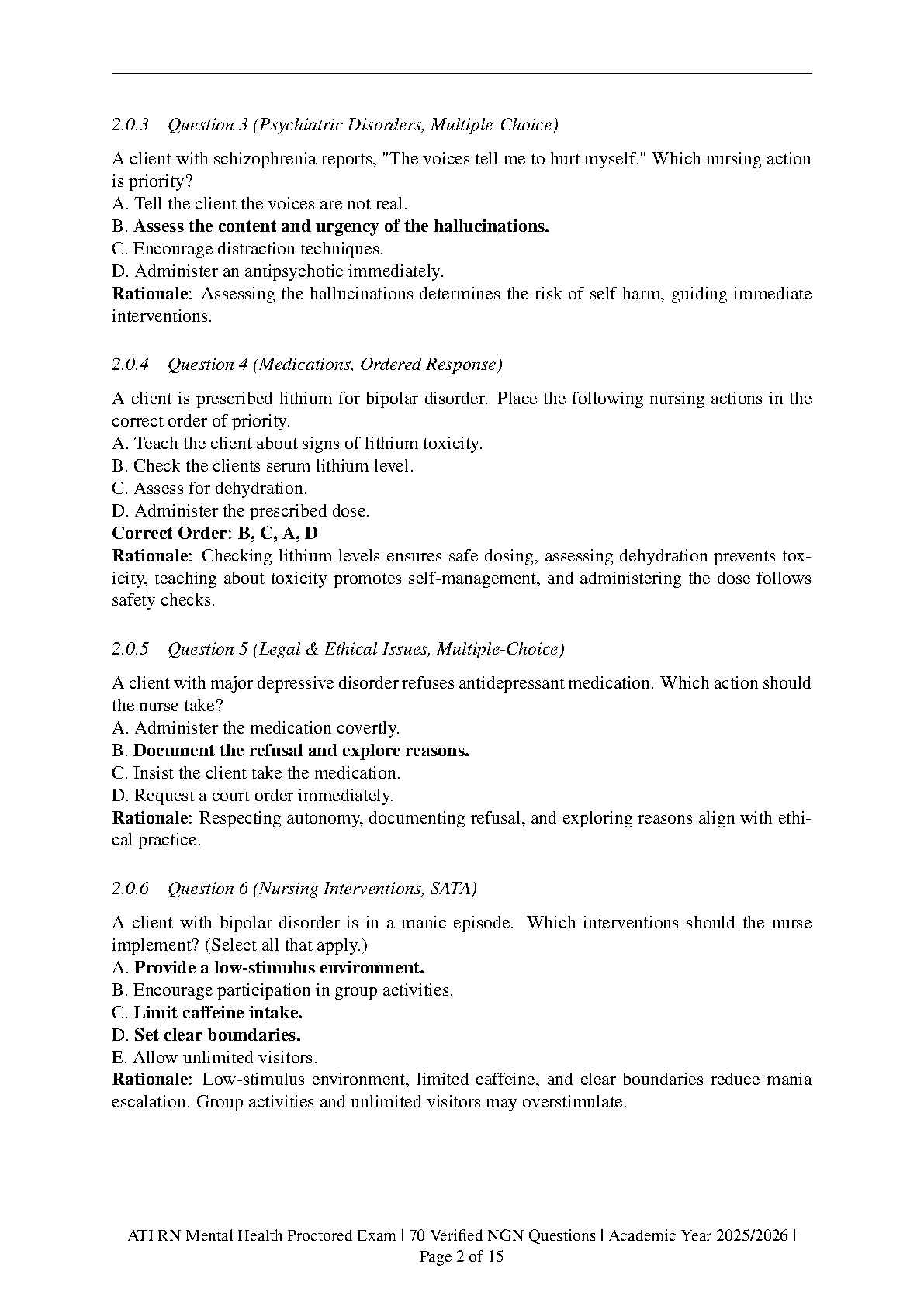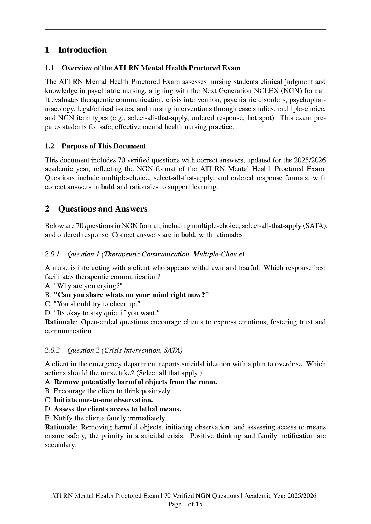 Excel in your nursing program with our definitive study guide for the ATI RN Mental Health Proctored Exam, fully updated for the 2025/2026 academic year. This comprehensive resource features 70 meticulously crafted questions complete with verified answers, all designed in the Next Generation NCLEX (NGN) format. Master key mental health nursing concepts, boost your confidence, and ensure you pass your proctored exam on the very first try. Stop worrying about resits and start your journey to becoming a successful RN today!
