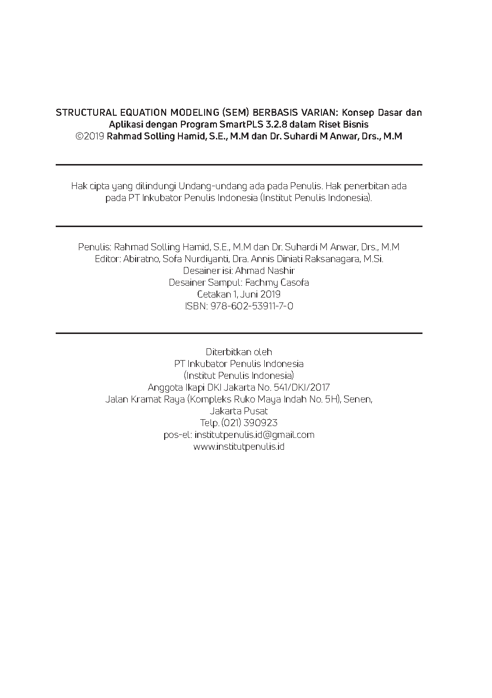 Unlock the power of advanced statistical analysis with this comprehensive guide to Variance-Based Structural Equation Modeling (SEM). Updated for the 2025/2026 academic year, this resource is your key to mastering PLS-SEM using the SmartPLS 3.2.8 software. Authored by experts Rahmad Solling Hamid and Suhardi M Anwar, this guide breaks down complex concepts in business research, econometrics, and statistics into easy-to-understand steps. Featuring real-world case studies and practical applications, this book is specifically designed to help students and researchers confidently apply SEM techniques, ensuring they pass their quantitative analysis exams and complete research projects successfully on the first attempt. Avoid resits and excel in your studies with this essential guide.