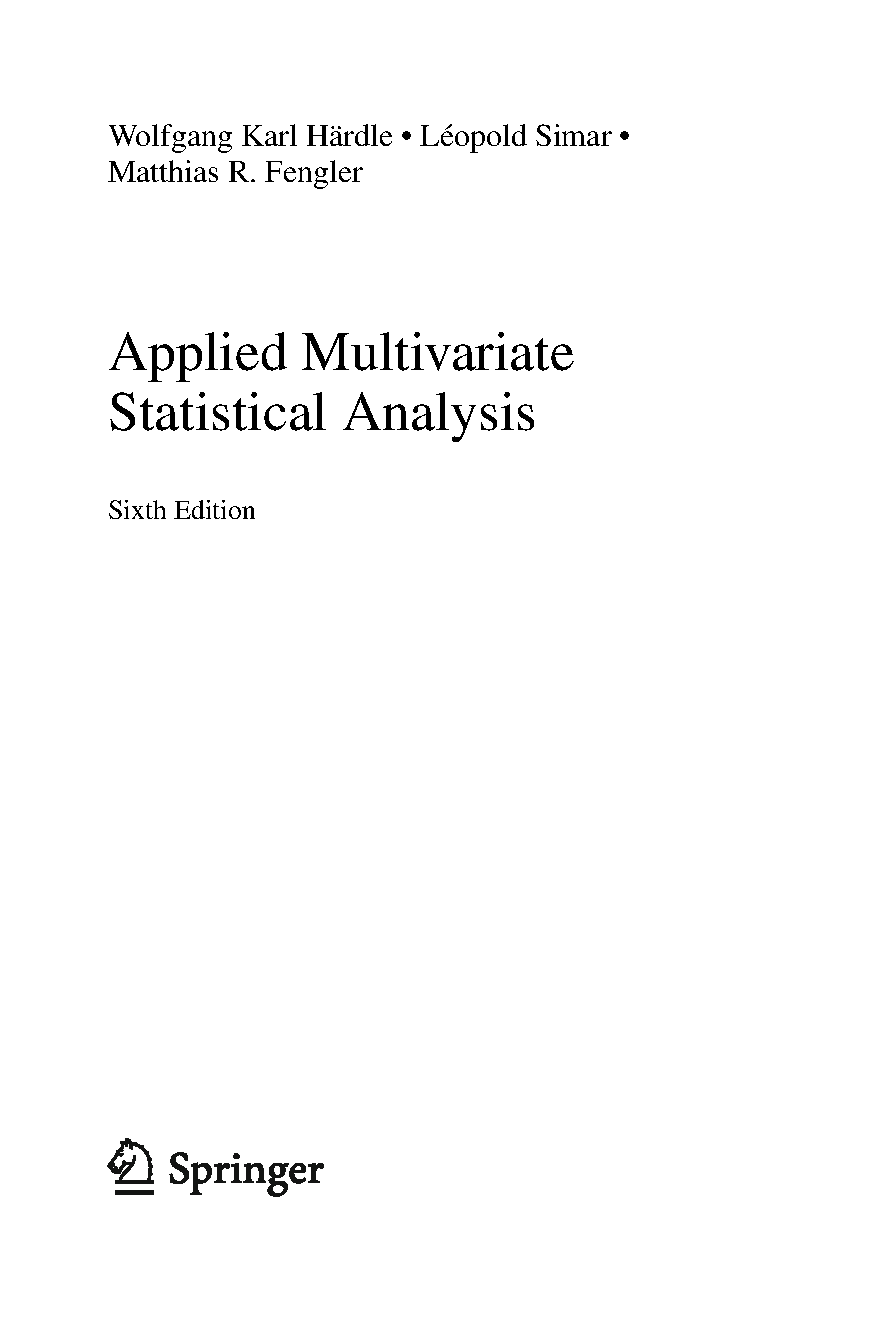 Test Bank for Applied Multivariate Statistical Analysis, 6th Edition by Wolfgang Karl Härdle, Léopold Simar, and Matthias R. Fengler