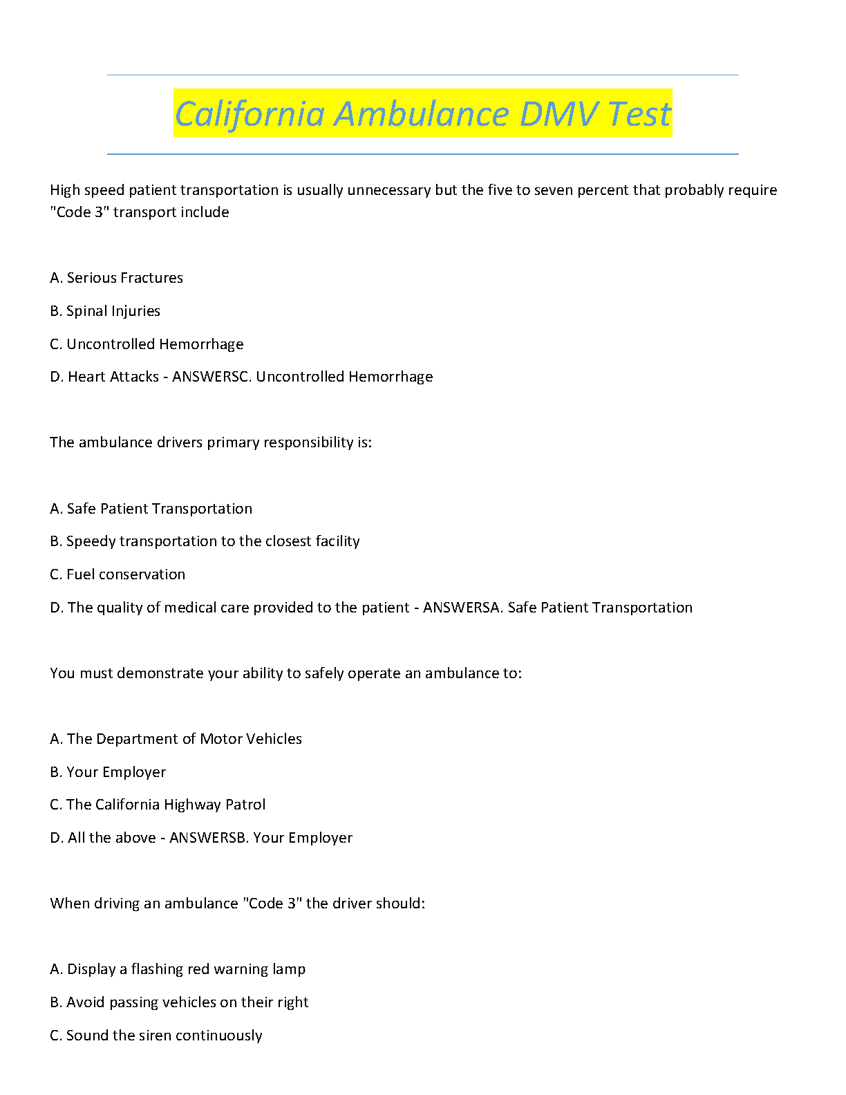 Ace Your California Ambulance DMV Certification: The Ultimate 2025 Test Bank with Q&A